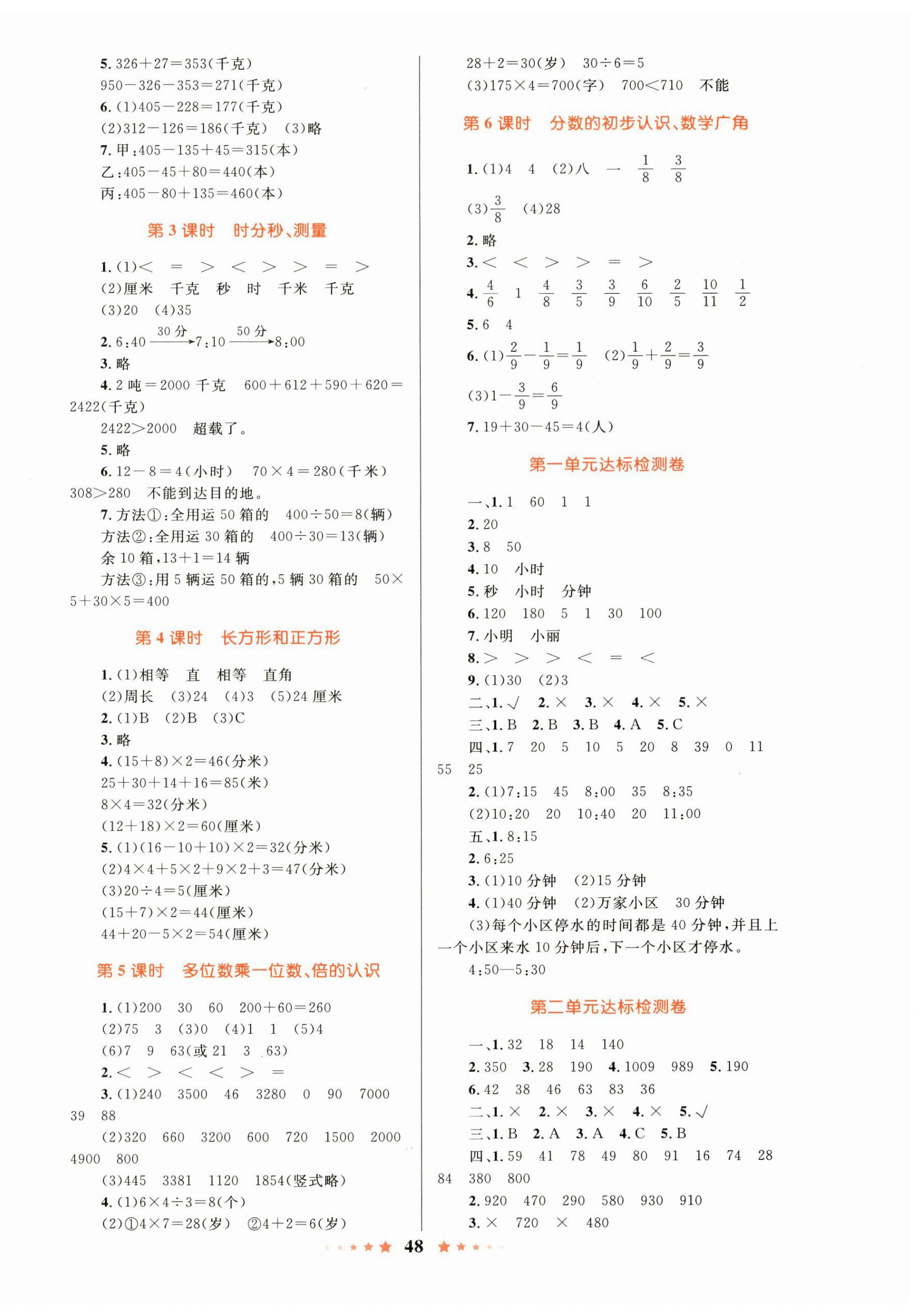 注:目前有些书本章节名称可能整理的还不是很完善,但都是按照顺序排列的,请同学们按照顺序仔细查找。练习册 2023年小学同步测控全优设计三年级数学上册人教版 答案主要是用来给同学们做完题方便对答案用的,请勿直接抄袭。