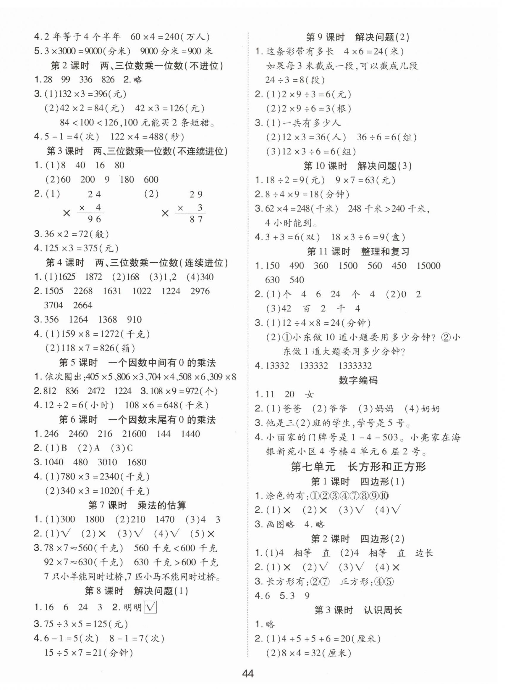 2023年夺冠新课堂黄冈课课练三年级数学上册人教版