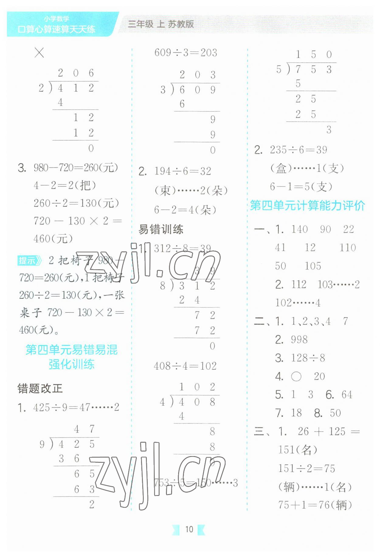 注:目前有些书本章节名称可能整理的还不是很完善,但都是按照顺序排列的,请同学们按照顺序仔细查找。练习册 2023年口算心算速算三年级数学上册苏教版 答案主要是用来给同学们做完题方便对答案用的,请勿直接抄袭。