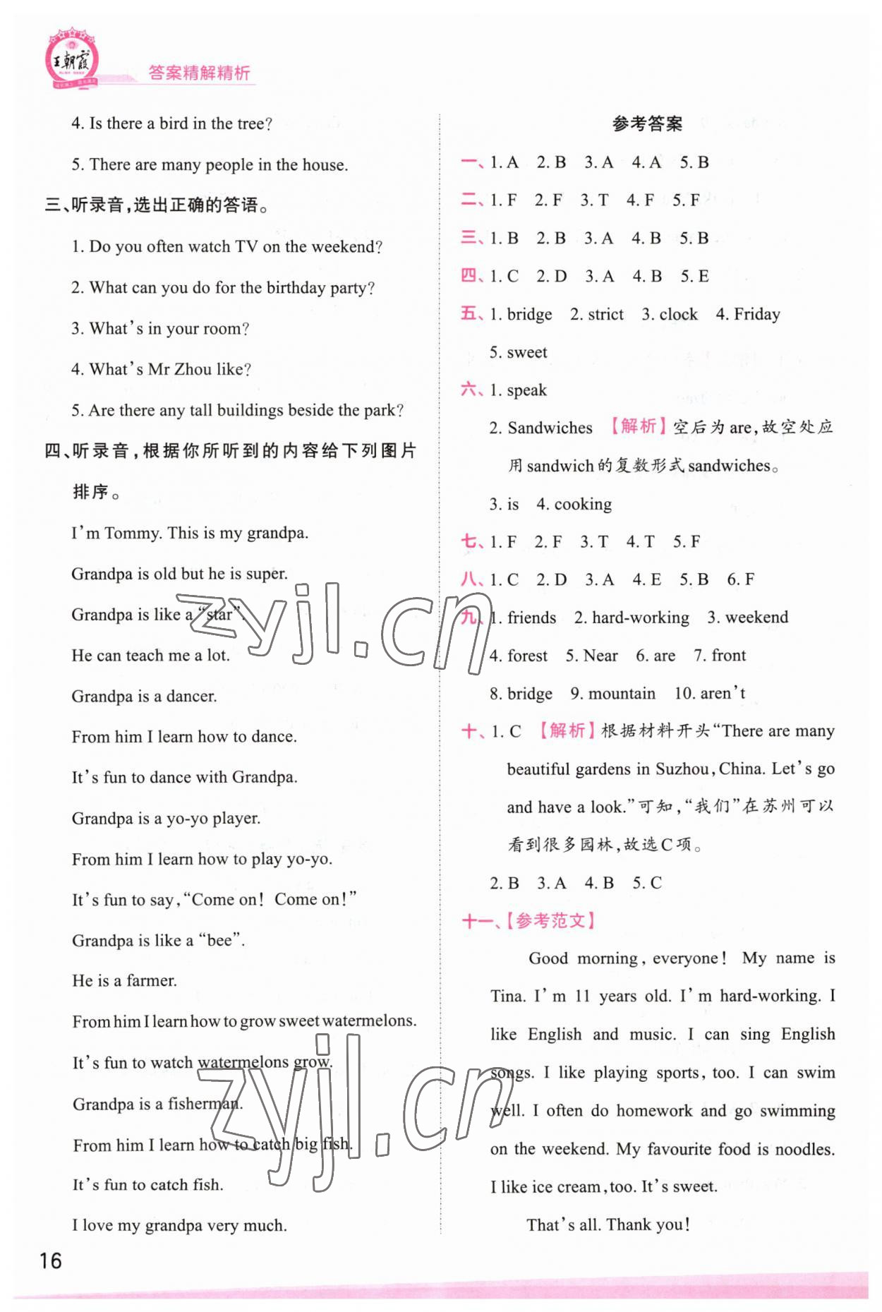 注:目前有些书本章节名称可能整理的还不是很完善,但都是按照顺序排列的,请同学们按照顺序仔细查找。练习册 2023年创维新课堂五年级英语上册人教版 答案主要是用来给同学们做完题方便对答案用的,请勿直接抄袭。