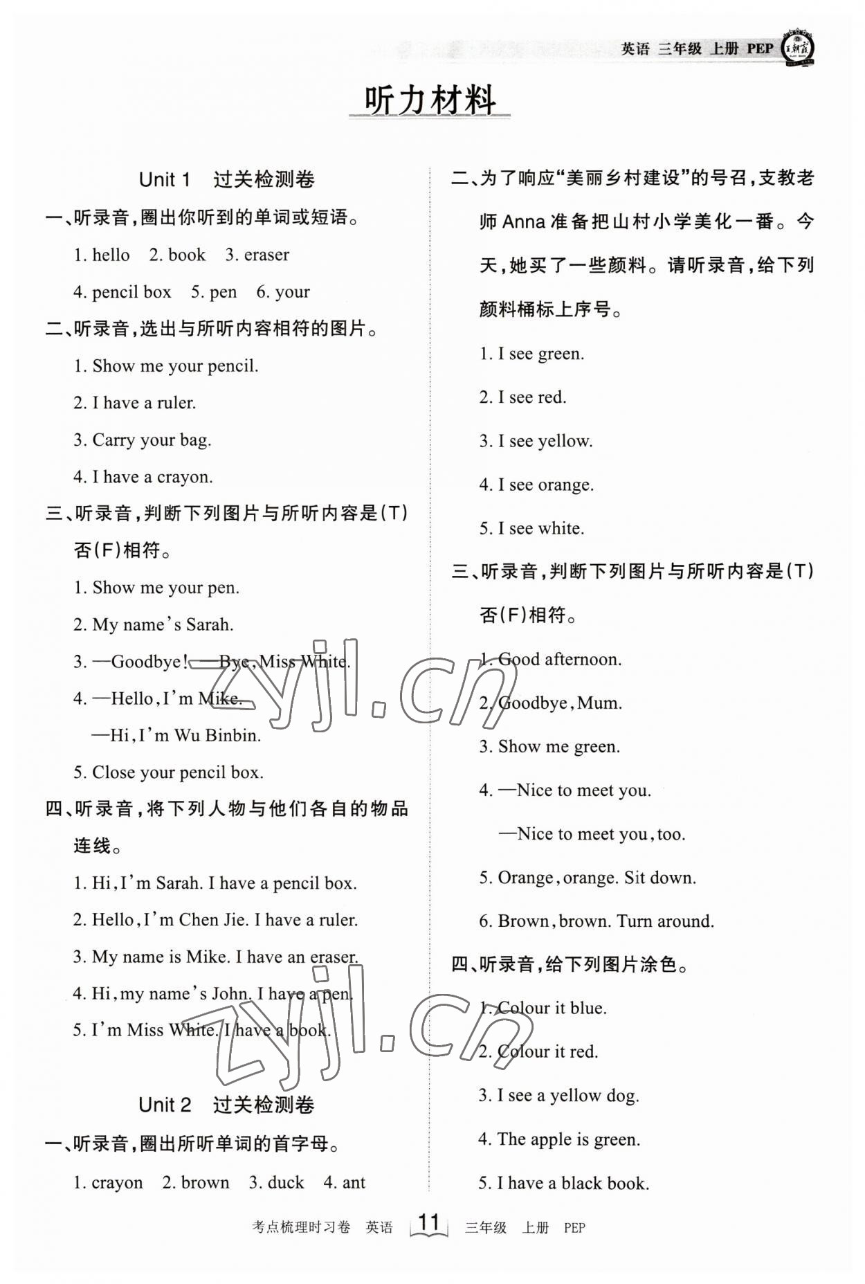 2023年王朝霞考点梳理时习卷三年级英语上册人教版