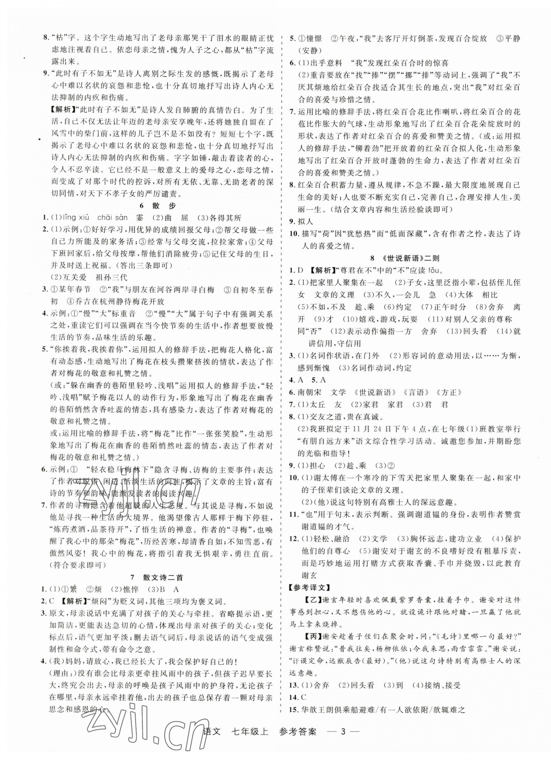 注:目前有些书本章节名称可能整理的还不是很完善,但都是按照顺序排列的,请同学们按照顺序仔细查找。练习册 2023年精彩练习就练这一本七年级语文上册人教版 答案主要是用来给同学们做完题方便对答案用的,请勿直接抄袭。