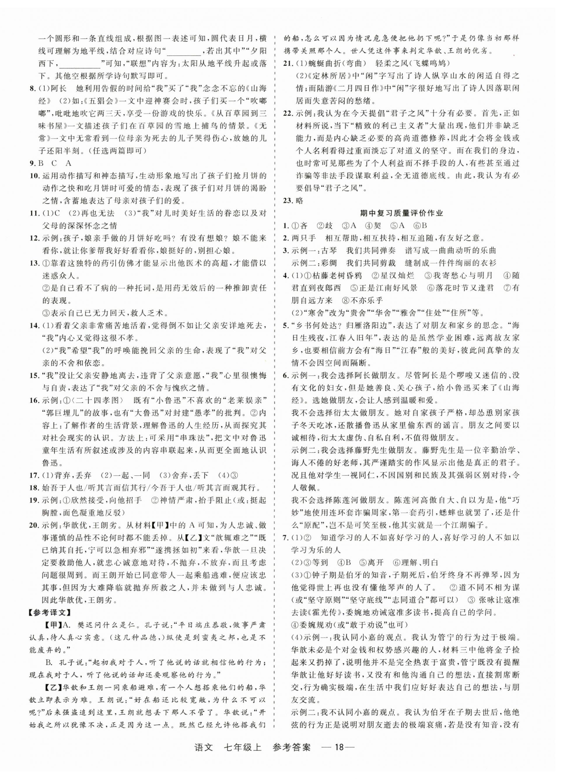 注:目前有些书本章节名称可能整理的还不是很完善,但都是按照顺序排列的,请同学们按照顺序仔细查找。练习册 2023年精彩练习就练这一本七年级语文上册人教版 答案主要是用来给同学们做完题方便对答案用的,请勿直接抄袭。
