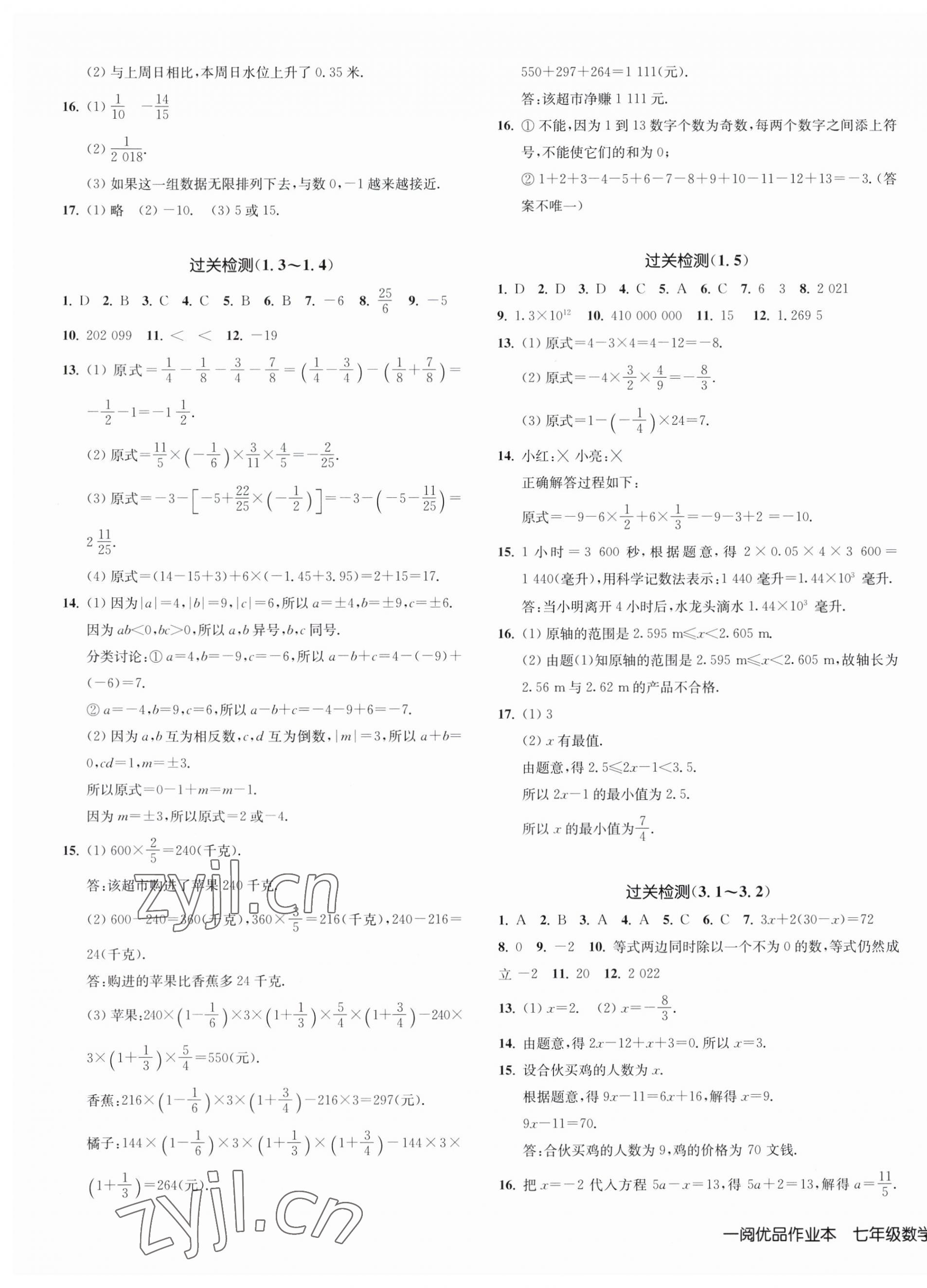 注:目前有些书本章节名称可能整理的还不是很完善,但都是按照顺序排列的,请同学们按照顺序仔细查找。练习册 2023年一阅优品作业本七年级数学上册人教版 答案主要是用来给同学们做完题方便对答案用的,请勿直接抄袭。