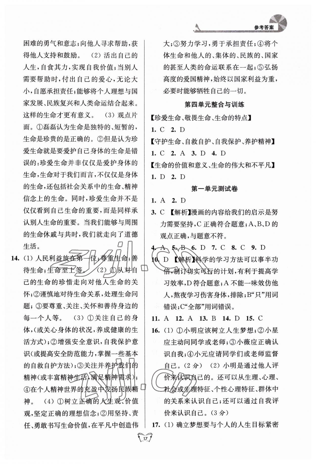 注:目前有些书本章节名称可能整理的还不是很完善,但都是按照顺序排列的,请同学们按照顺序仔细查找。练习册 2023年创新课时作业本江苏凤凰少年儿童出版社七年级道德与法治上册人教版 答案主要是用来给同学们做完题方便对答案用的,请勿直接抄袭。