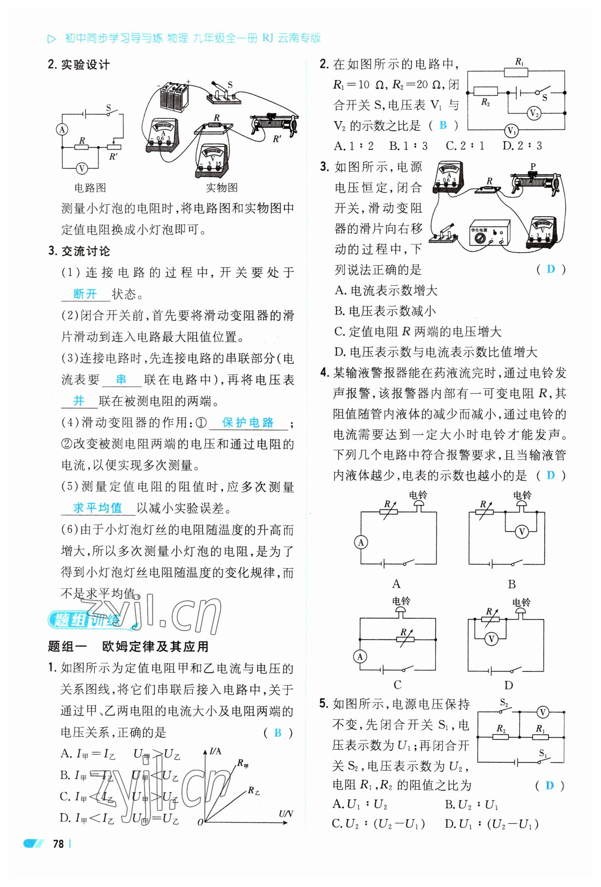 注:目前有些书本章节名称可能整理的还不是很完善,但都是按照顺序排列的,请同学们按照顺序仔细查找。练习册 2023年初中同步学习导与练导学探究案九年级物理全一册人教版云南专版 答案主要是用来给同学们做完题方便对答案用的,请勿直接抄袭。