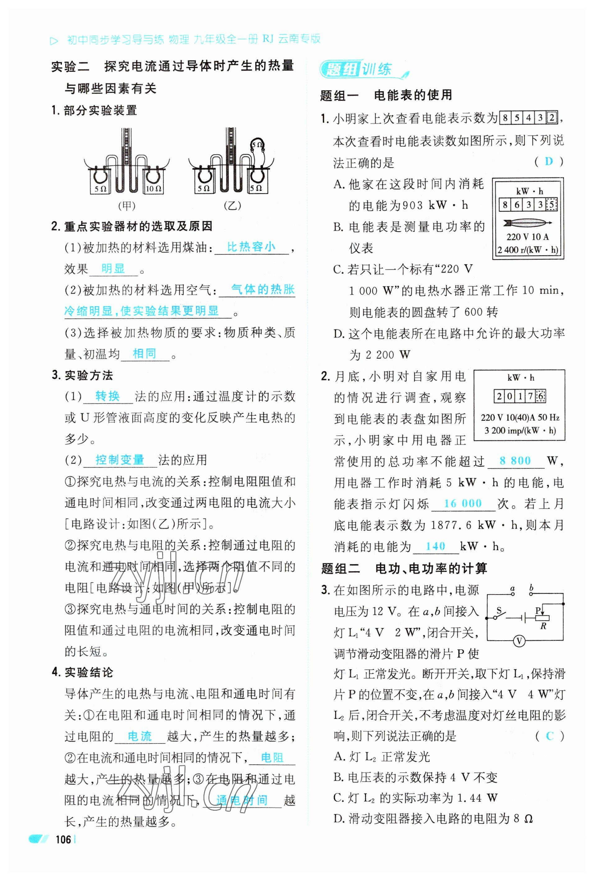 2023年初中同步学习导与练导学探究案九年级物理全一册人教版云南专版