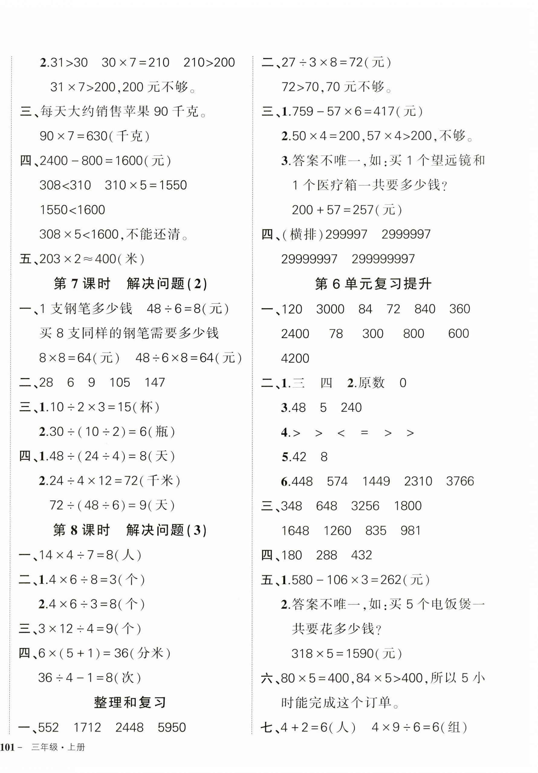 2023年状元成才路创优作业100分三年级数学上册人教版贵州专版