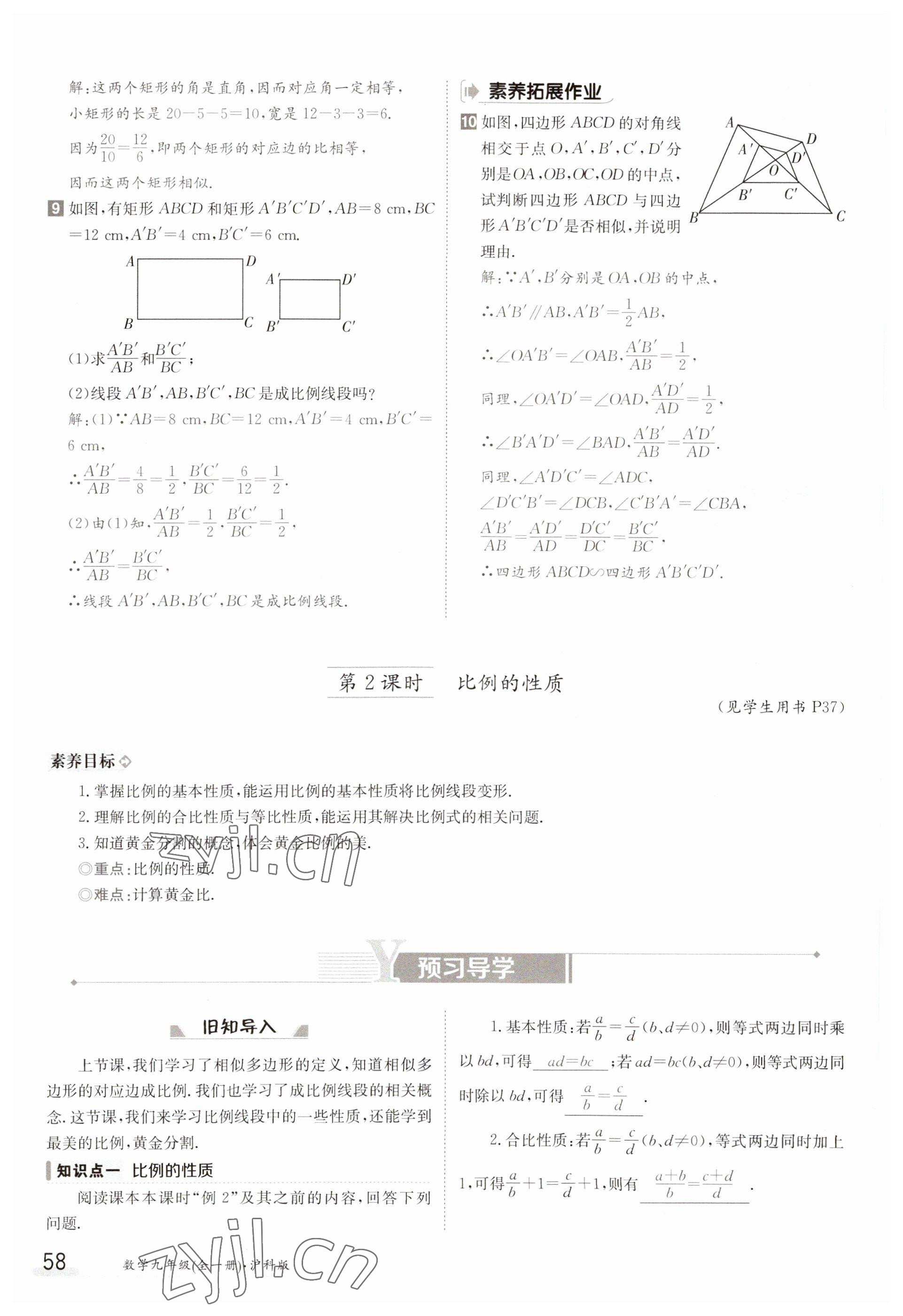 2023年金太阳导学案九年级数学沪科版