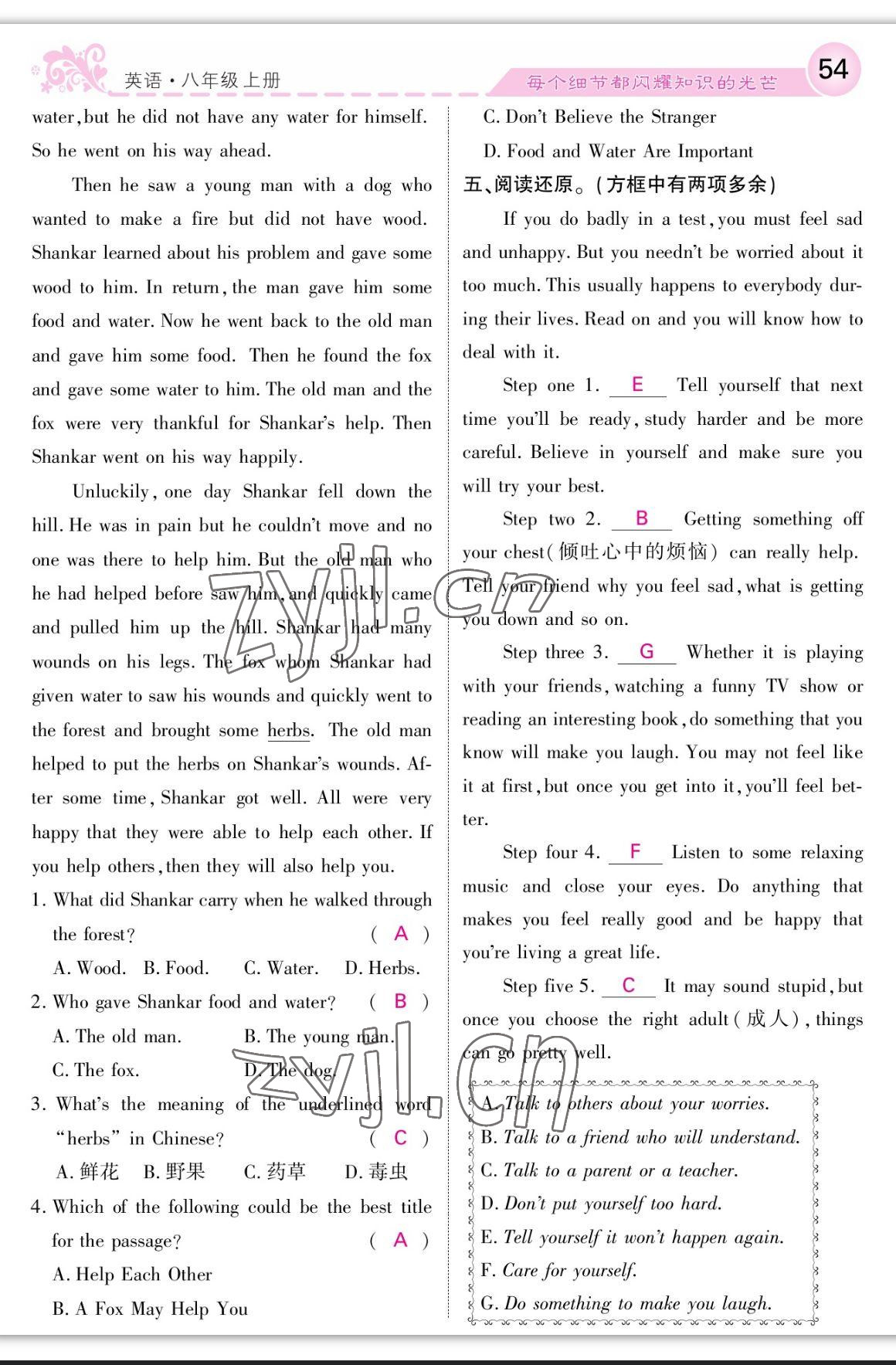 注:目前有些书本章节名称可能整理的还不是很完善,但都是按照顺序排列的,请同学们按照顺序仔细查找。练习册 2023年课堂点睛八年级英语上册外研版 答案主要是用来给同学们做完题方便对答案用的,请勿直接抄袭。