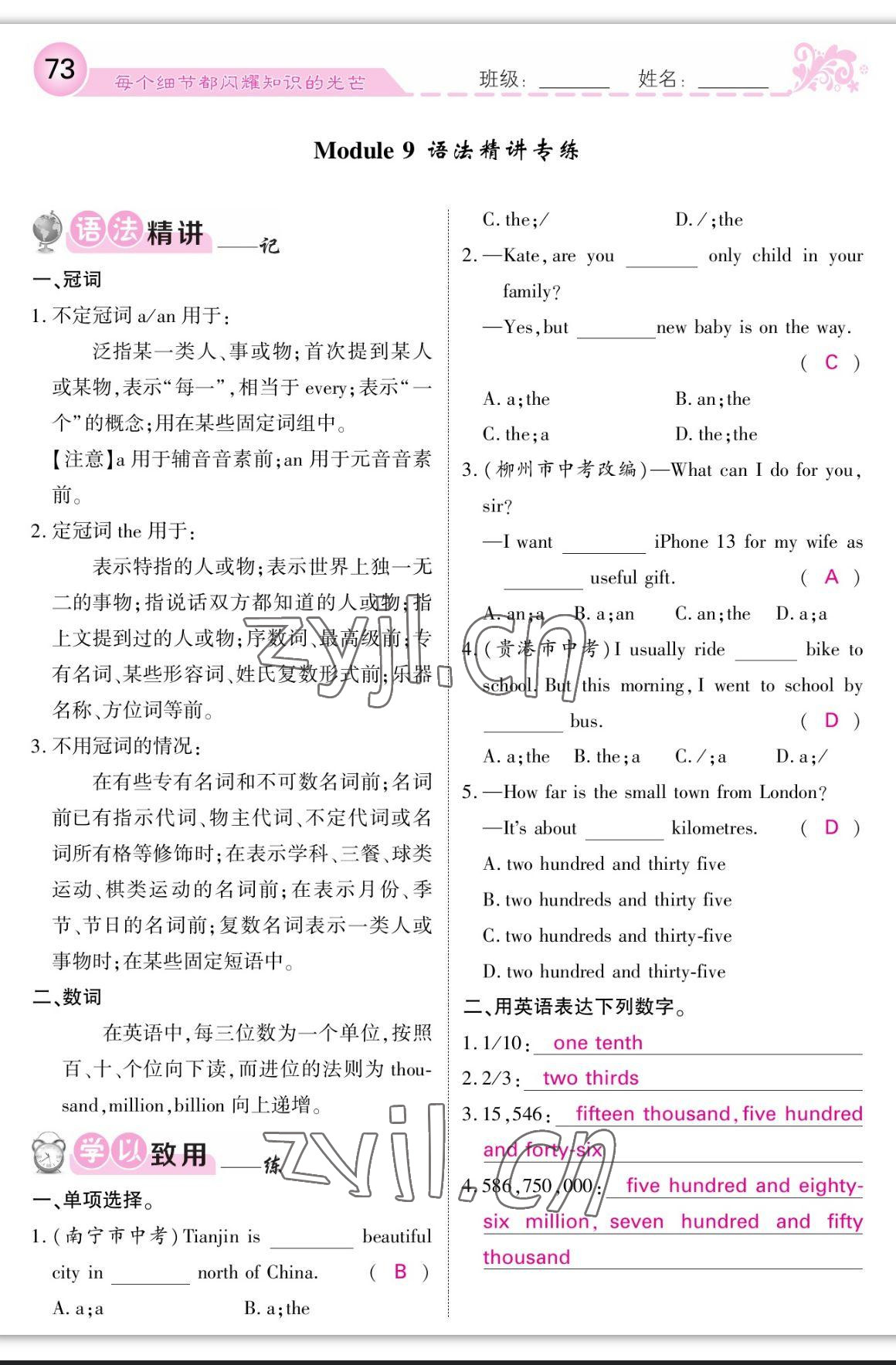 - 参考答案第73页