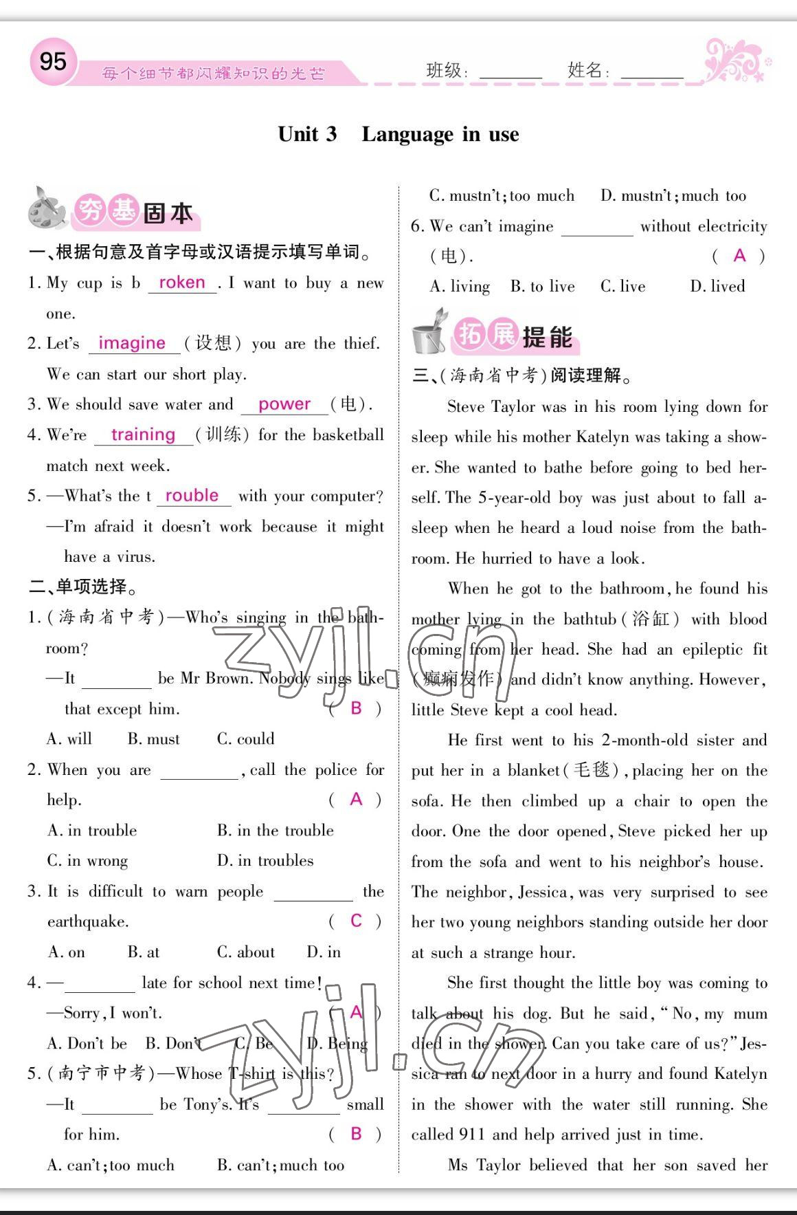 - 参考答案第95页