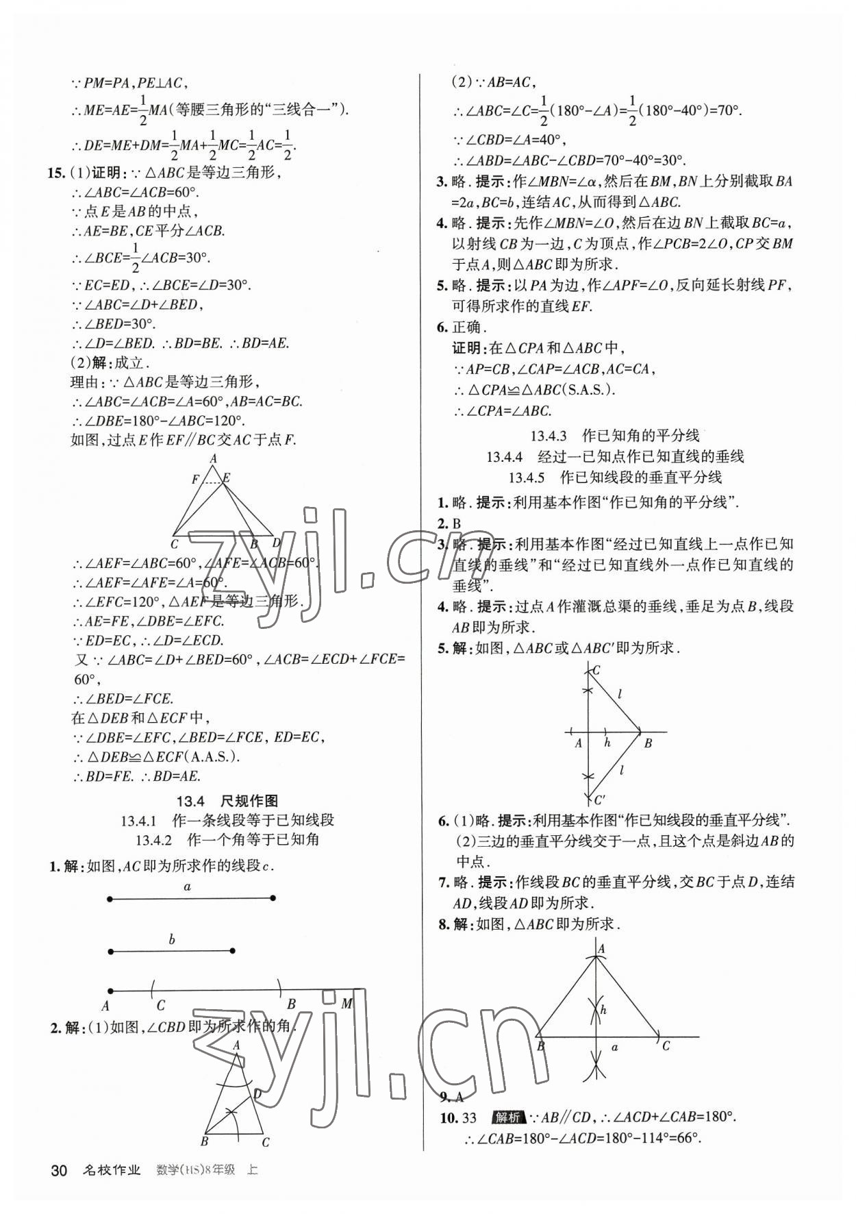 注:目前有些书本章节名称可能整理的还不是很完善,但都是按照顺序排列的,请同学们按照顺序仔细查找。练习册 2023年名校作业八年级数学上册华师大版山西专版 答案主要是用来给同学们做完题方便对答案用的,请勿直接抄袭。