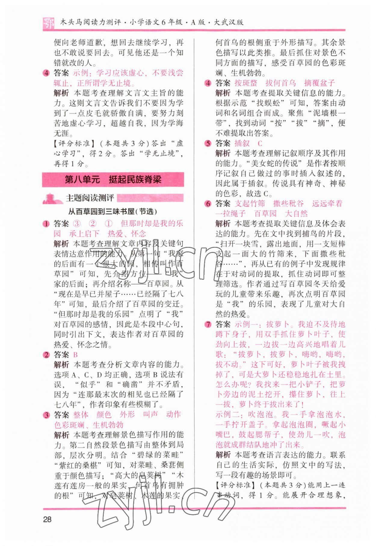 2023年木头马阅读力测评六年级语文A版大武汉专版