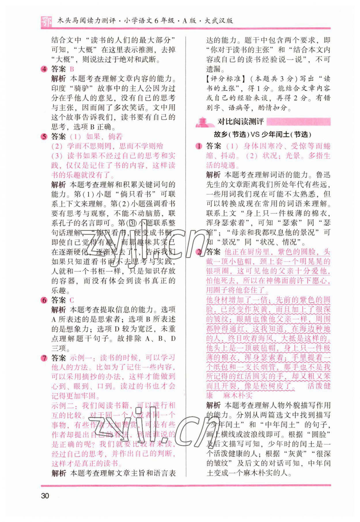 2023年木头马阅读力测评六年级语文A版大武汉专版