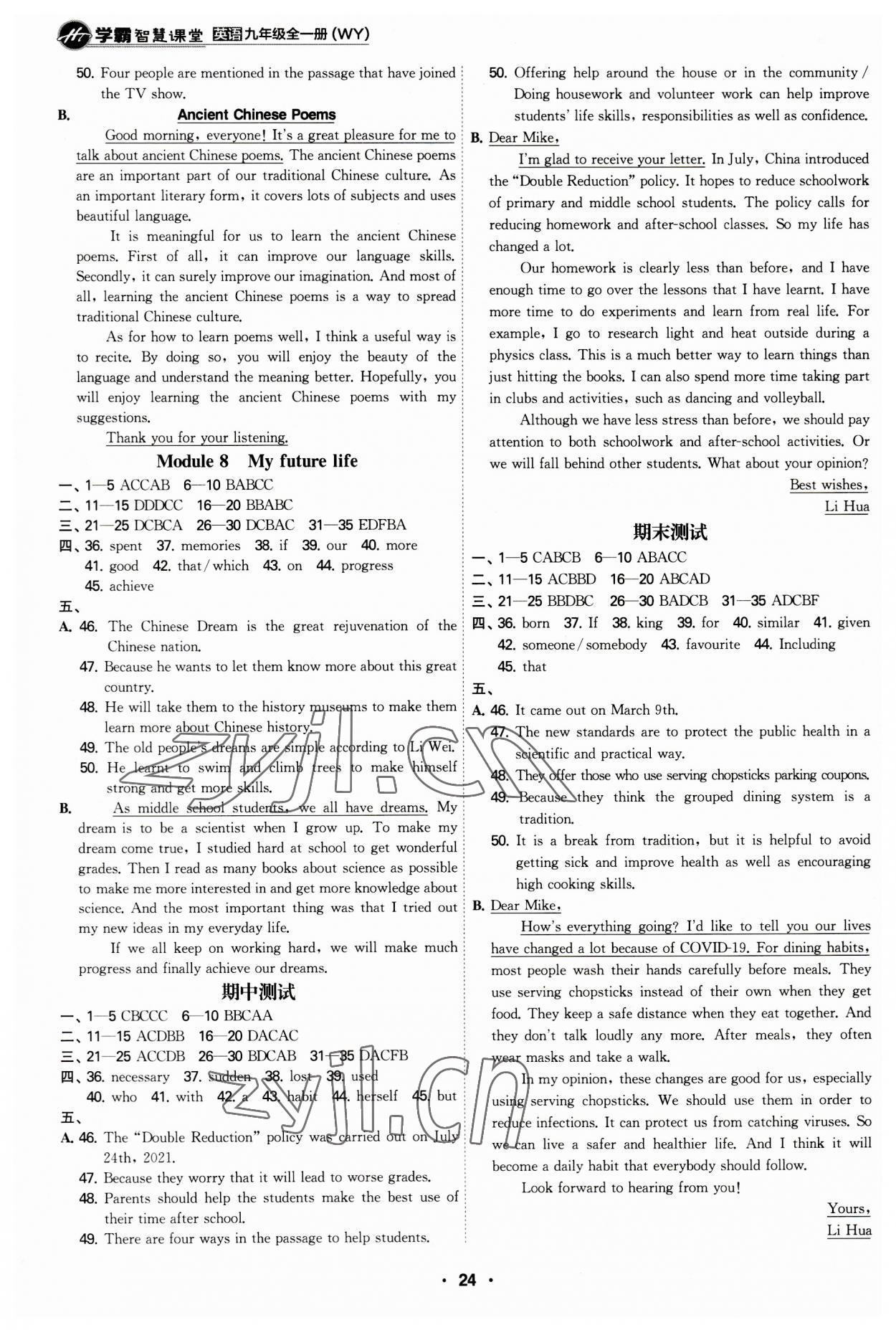 注:目前有些书本章节名称可能整理的还不是很完善,但都是按照顺序排列的,请同学们按照顺序仔细查找。练习册 2023年学霸智慧课堂九年级英语全一册外研版 答案主要是用来给同学们做完题方便对答案用的,请勿直接抄袭。