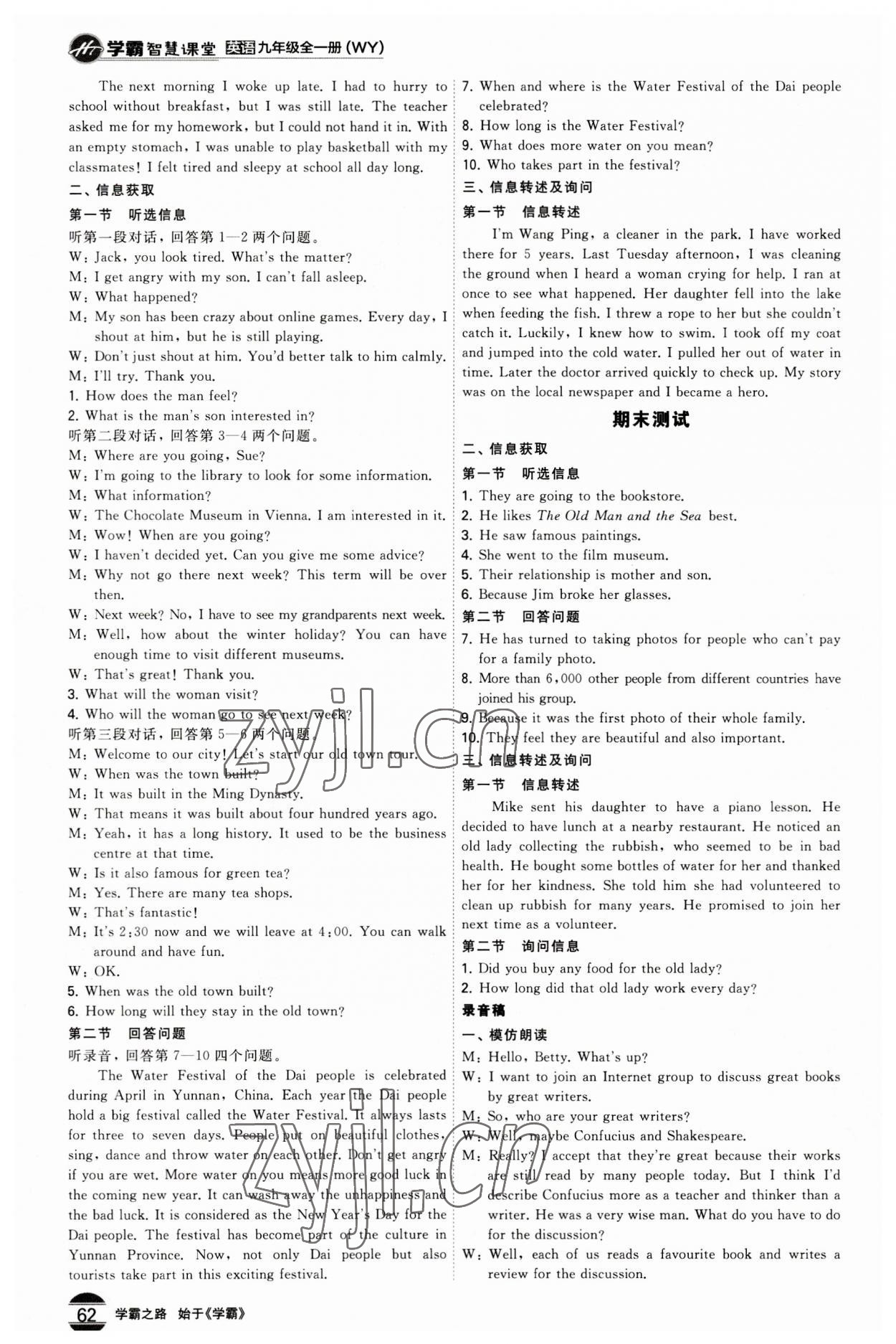 注:目前有些书本章节名称可能整理的还不是很完善,但都是按照顺序排列的,请同学们按照顺序仔细查找。练习册 2023年学霸智慧课堂九年级英语全一册外研版 答案主要是用来给同学们做完题方便对答案用的,请勿直接抄袭。