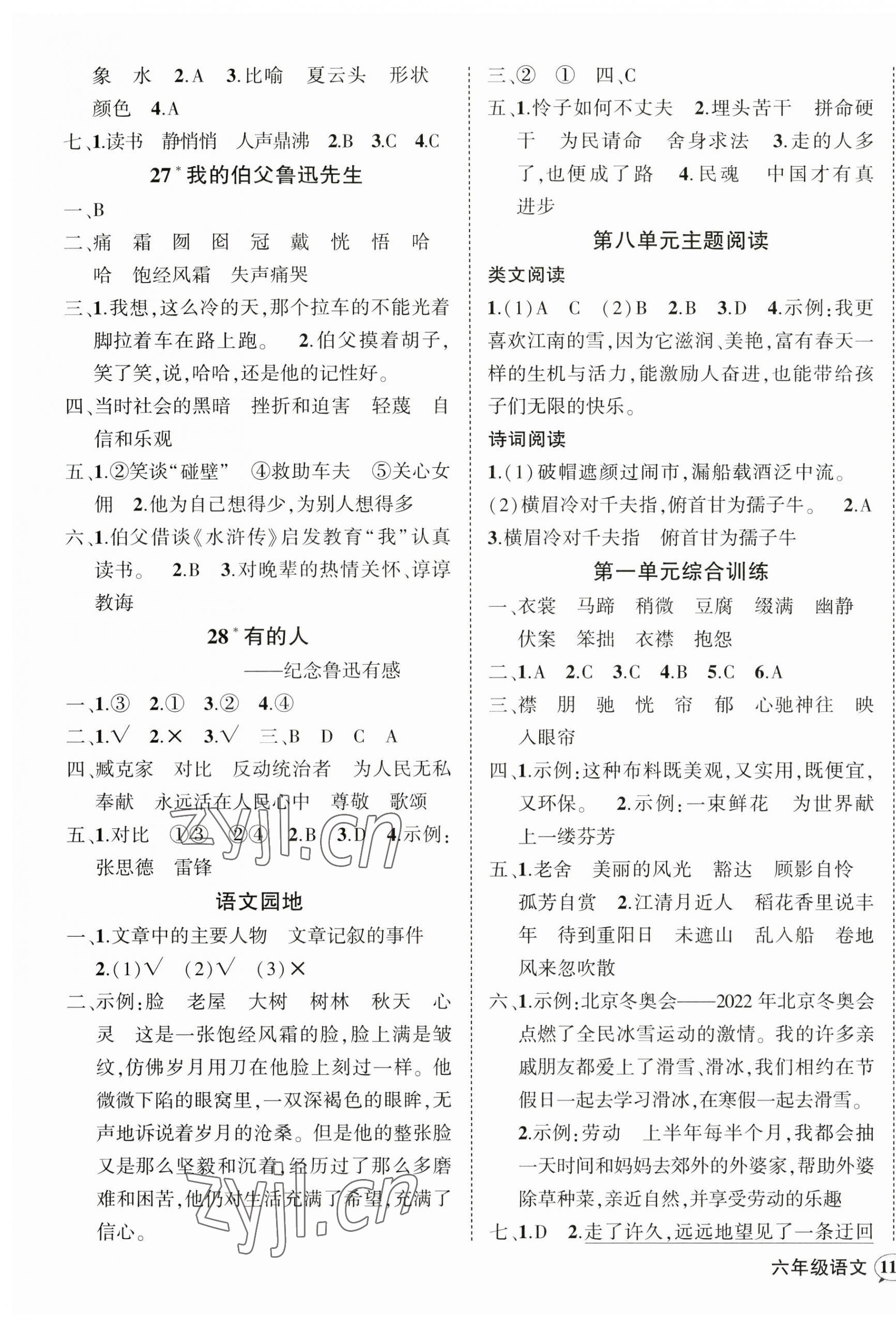 注:目前有些书本章节名称可能整理的还不是很完善,但都是按照顺序排列的,请同学们按照顺序仔细查找。练习册 2023年状元成才路创优作业100分六年级语文上册人教版湖南专版 答案主要是用来给同学们做完题方便对答案用的,请勿直接抄袭。