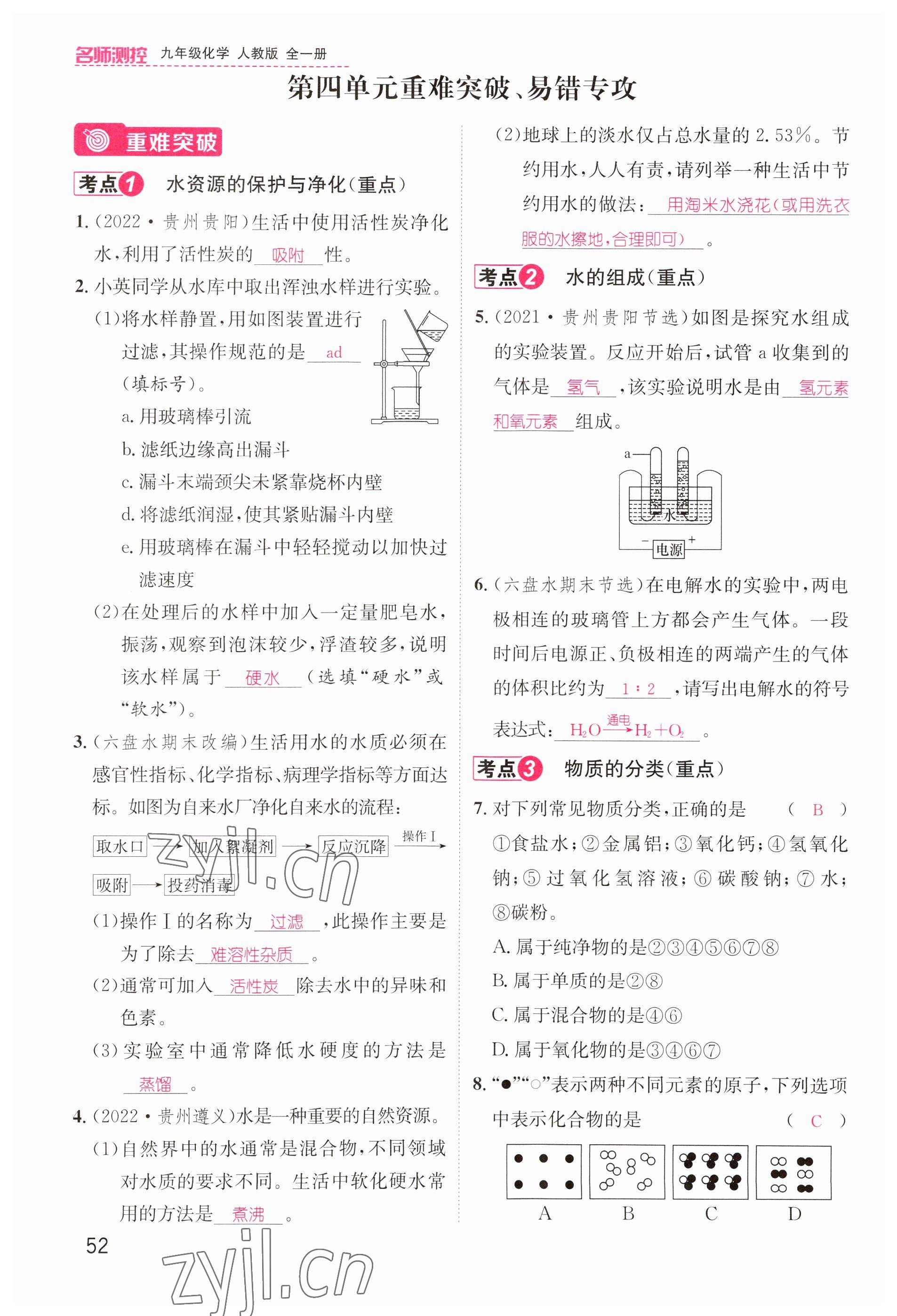 注:目前有些书本章节名称可能整理的还不是很完善,但都是按照顺序排列的,请同学们按照顺序仔细查找。练习册 2023年名师测控九年级化学全一册人教版贵州专版 答案主要是用来给同学们做完题方便对答案用的,请勿直接抄袭。