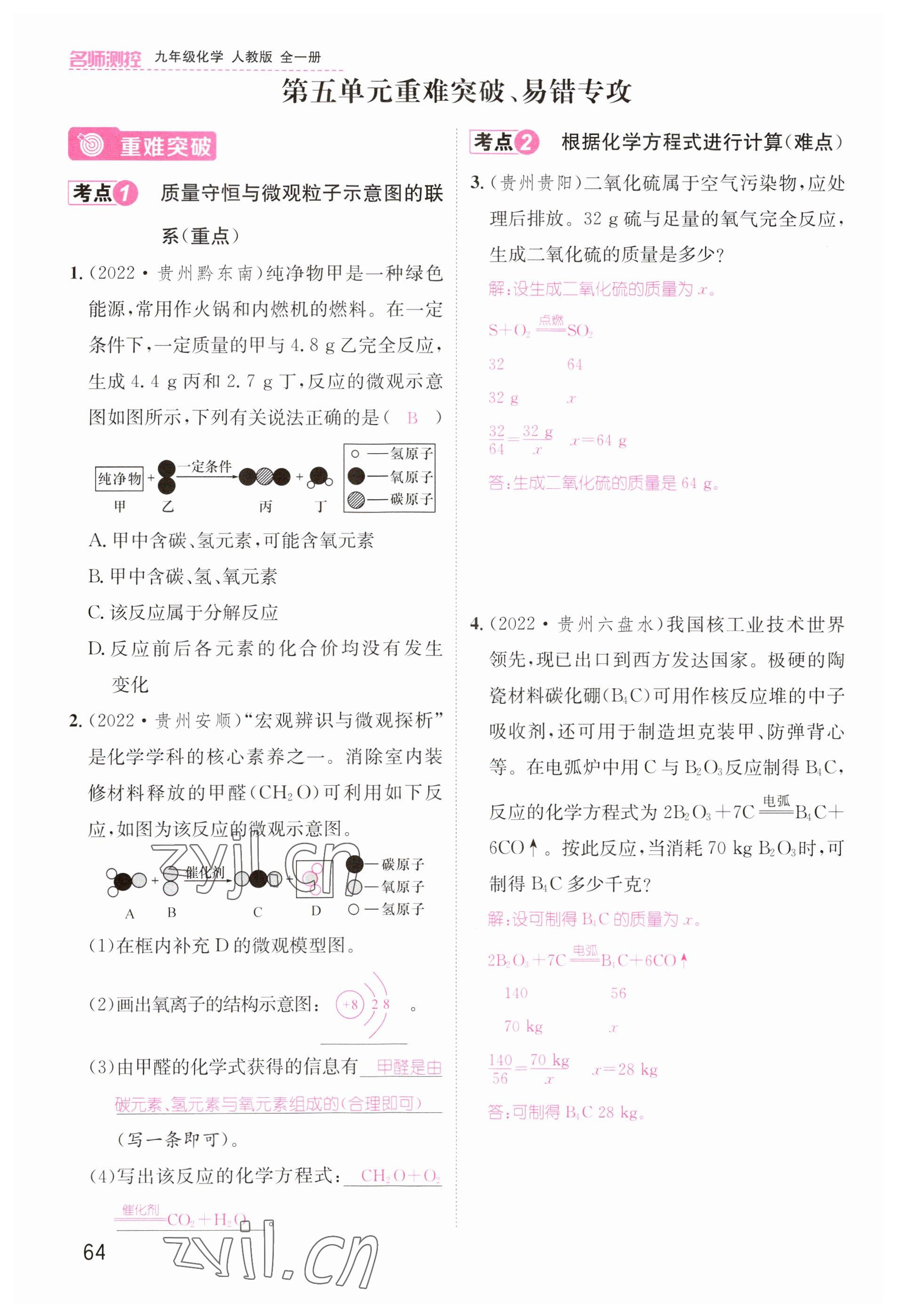 注:目前有些书本章节名称可能整理的还不是很完善,但都是按照顺序排列的,请同学们按照顺序仔细查找。练习册 2023年名师测控九年级化学全一册人教版贵州专版 答案主要是用来给同学们做完题方便对答案用的,请勿直接抄袭。
