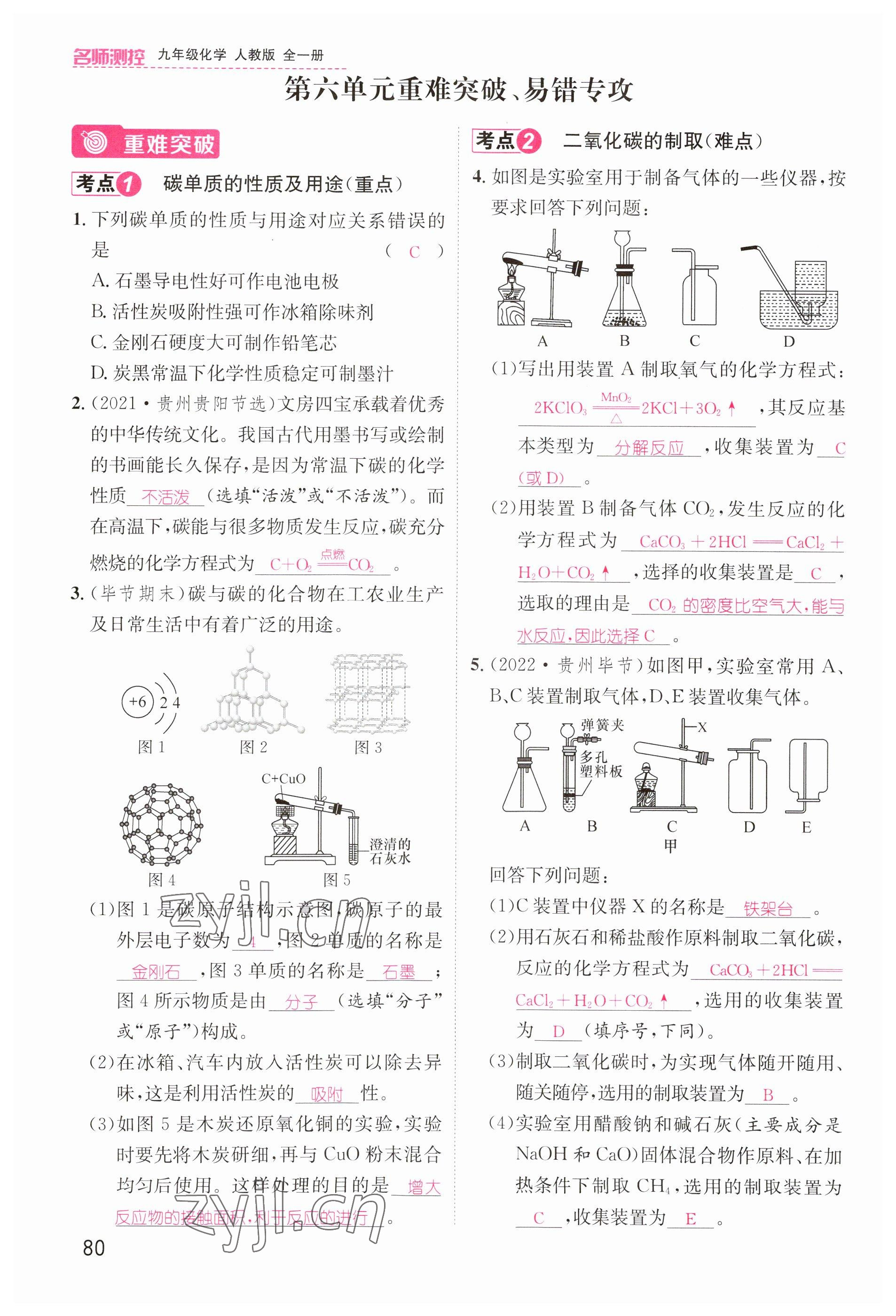注:目前有些书本章节名称可能整理的还不是很完善,但都是按照顺序排列的,请同学们按照顺序仔细查找。练习册 2023年名师测控九年级化学全一册人教版贵州专版 答案主要是用来给同学们做完题方便对答案用的,请勿直接抄袭。