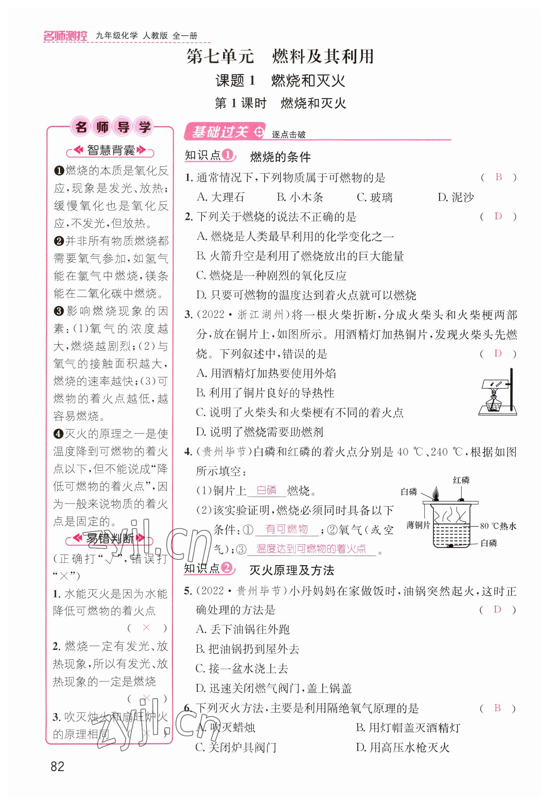 注:目前有些书本章节名称可能整理的还不是很完善,但都是按照顺序排列的,请同学们按照顺序仔细查找。练习册 2023年名师测控九年级化学全一册人教版贵州专版 答案主要是用来给同学们做完题方便对答案用的,请勿直接抄袭。