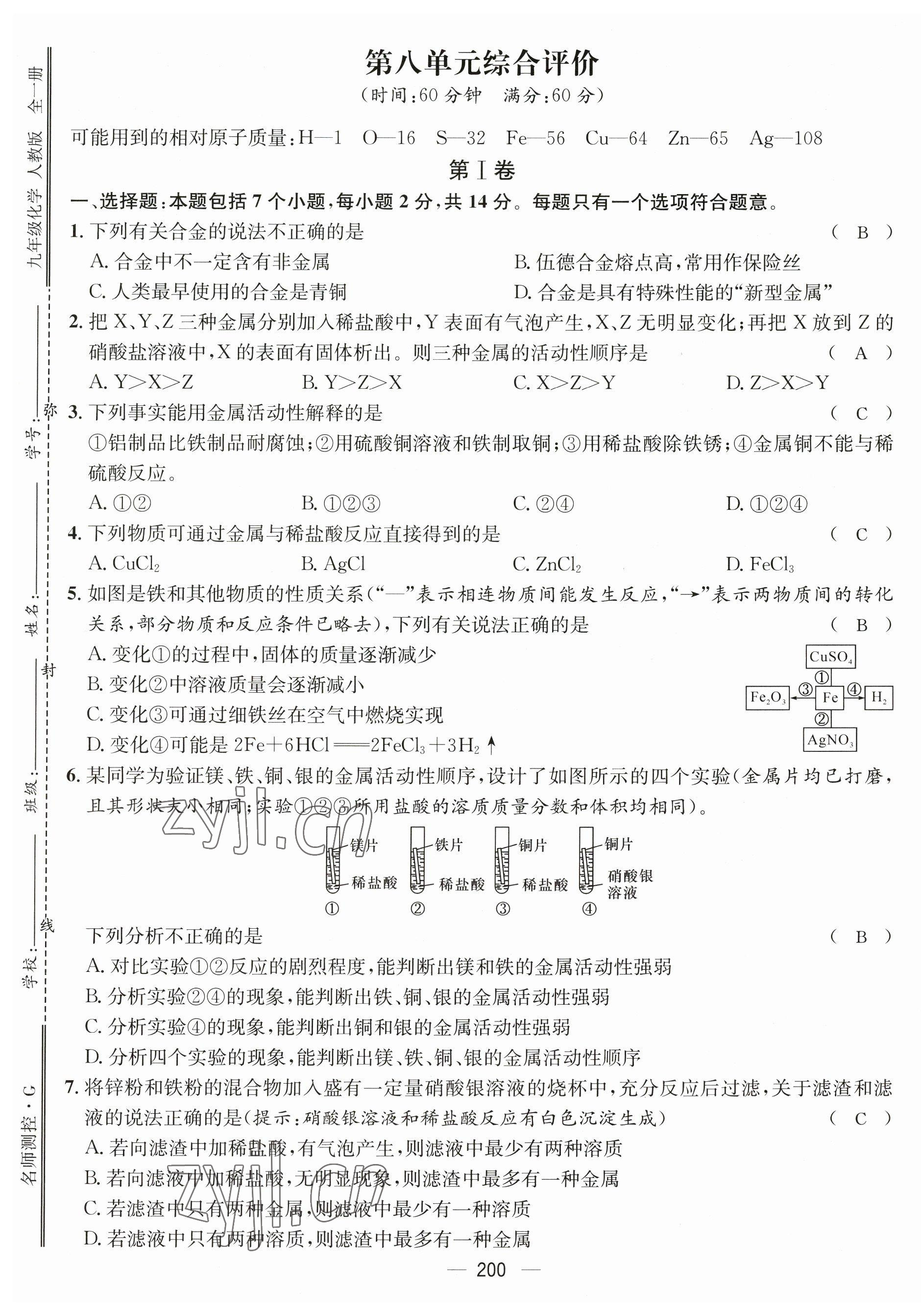 注:目前有些书本章节名称可能整理的还不是很完善,但都是按照顺序排列的,请同学们按照顺序仔细查找。练习册 2023年名师测控九年级化学全一册人教版贵州专版 答案主要是用来给同学们做完题方便对答案用的,请勿直接抄袭。