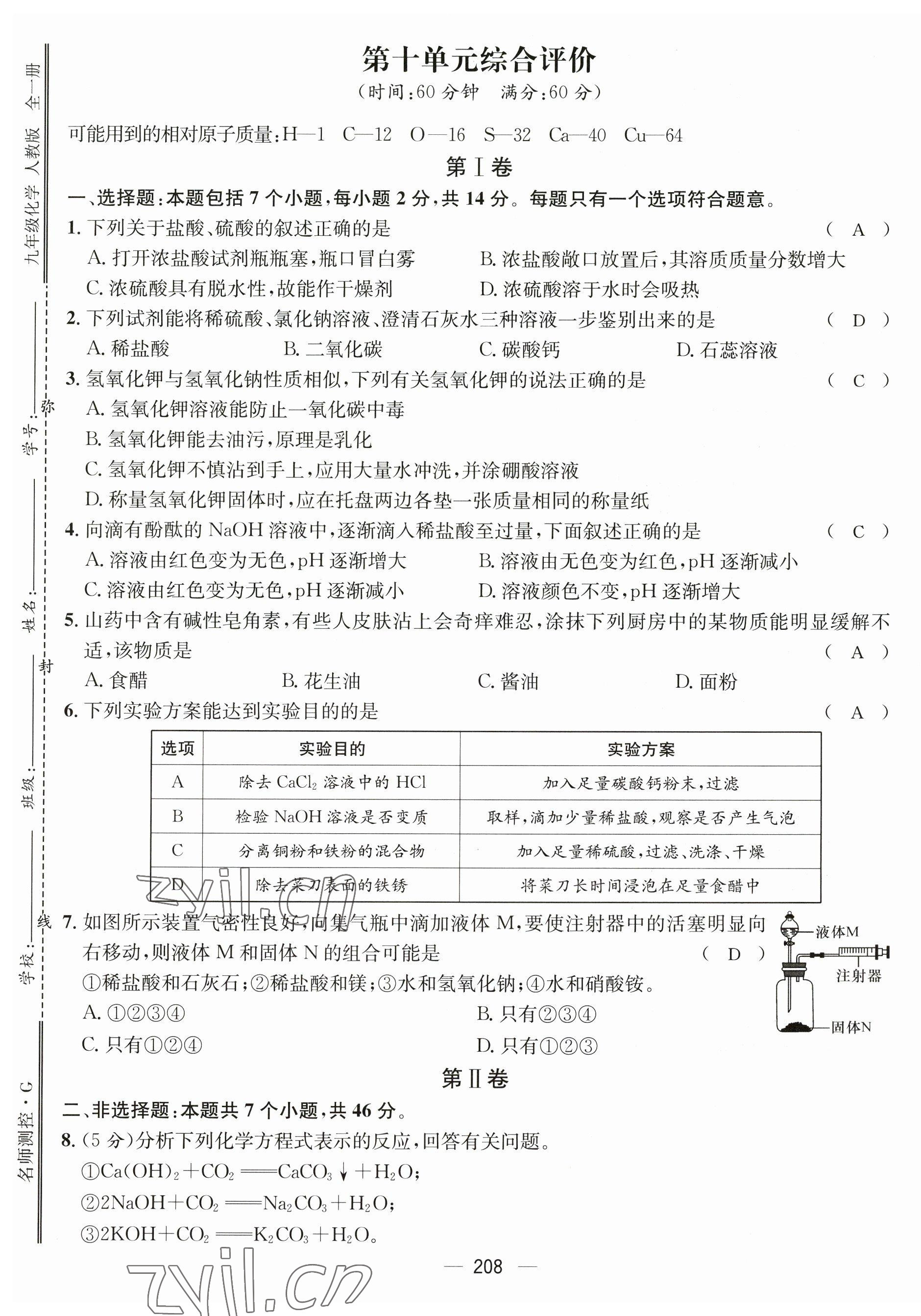 注:目前有些书本章节名称可能整理的还不是很完善,但都是按照顺序排列的,请同学们按照顺序仔细查找。练习册 2023年名师测控九年级化学全一册人教版贵州专版 答案主要是用来给同学们做完题方便对答案用的,请勿直接抄袭。