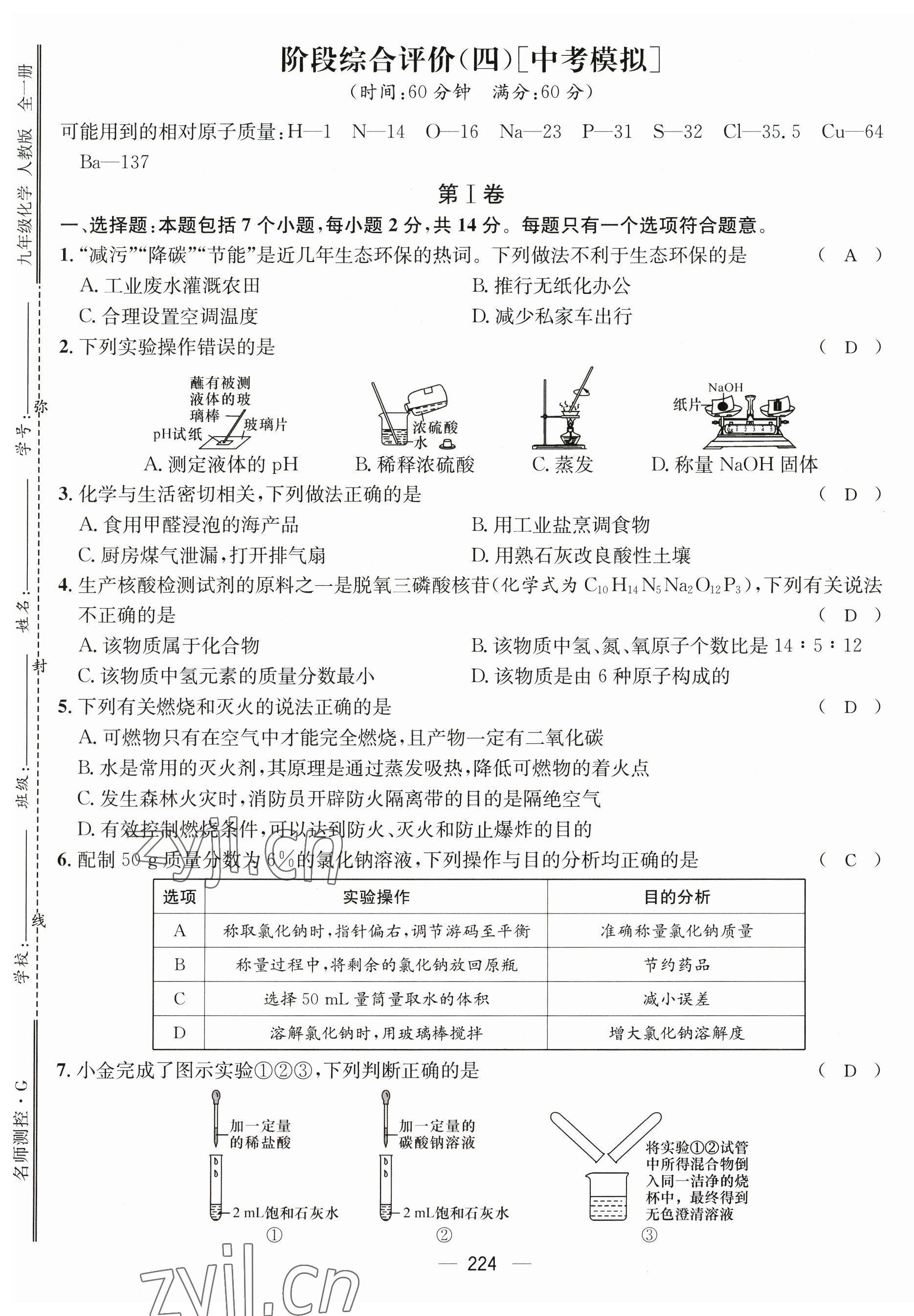 注:目前有些书本章节名称可能整理的还不是很完善,但都是按照顺序排列的,请同学们按照顺序仔细查找。练习册 2023年名师测控九年级化学全一册人教版贵州专版 答案主要是用来给同学们做完题方便对答案用的,请勿直接抄袭。