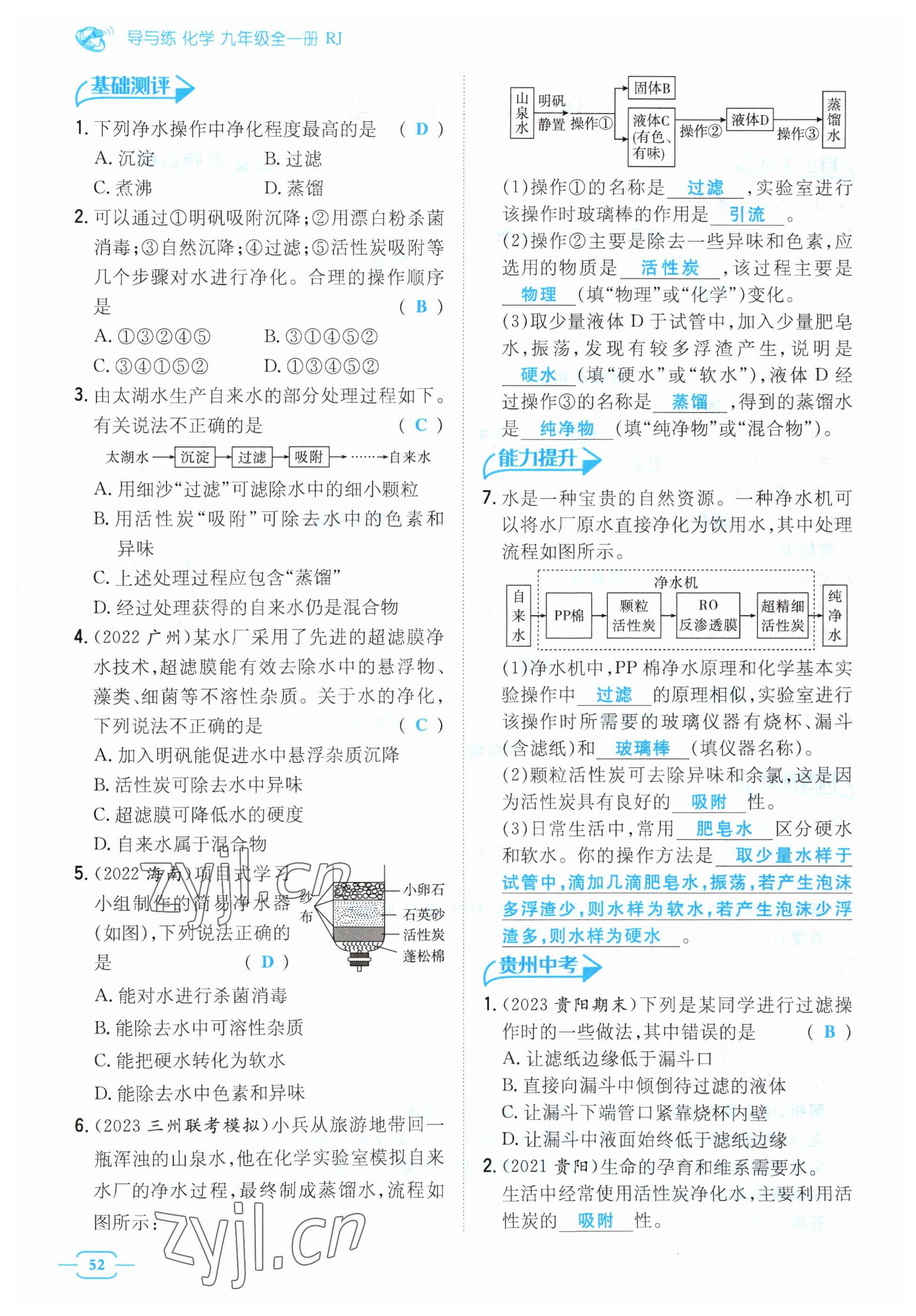 注:目前有些书本章节名称可能整理的还不是很完善,但都是按照顺序排列的,请同学们按照顺序仔细查找。练习册 2023年导与练九年级化学全一册人教版贵州专版 答案主要是用来给同学们做完题方便对答案用的,请勿直接抄袭。