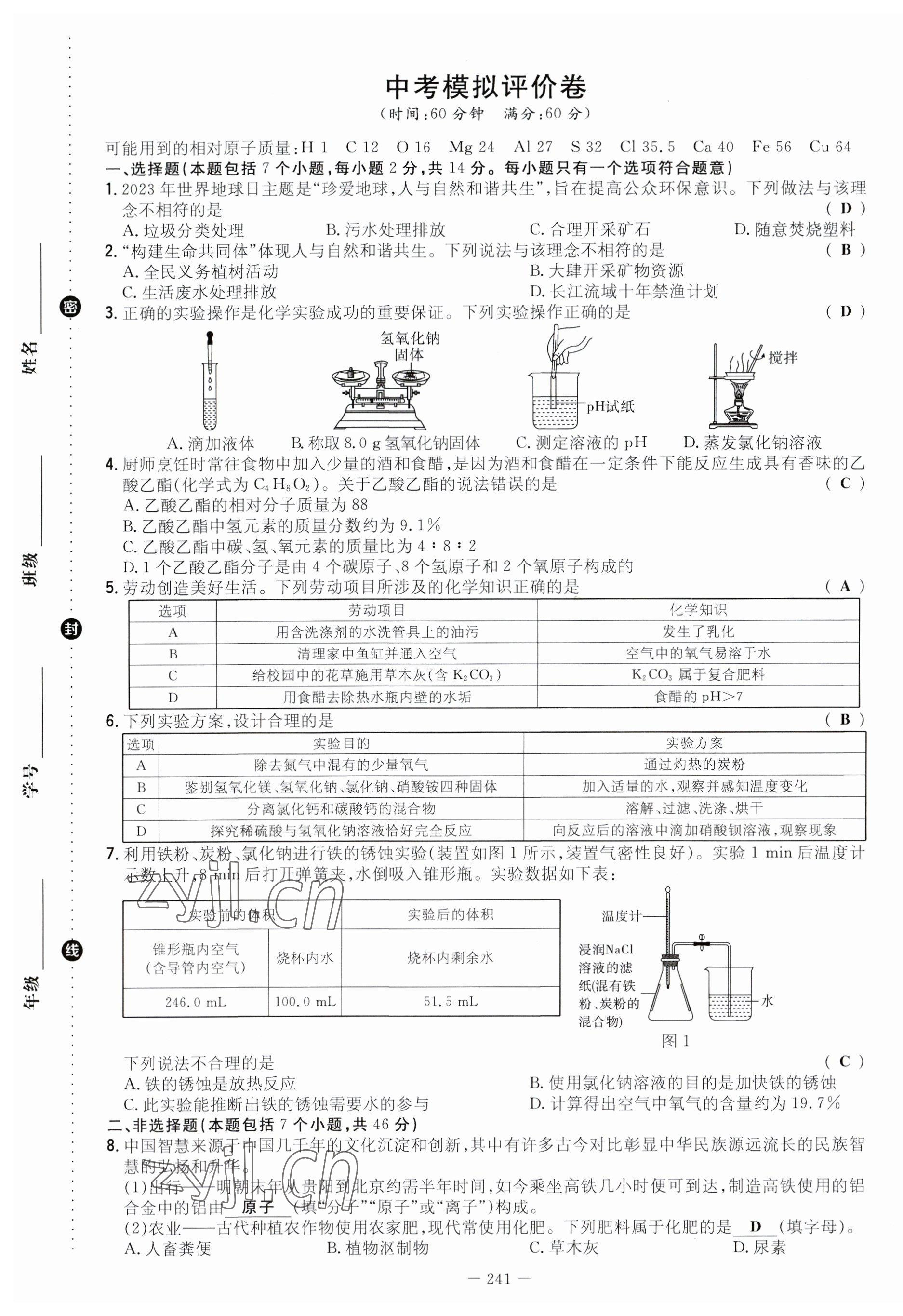注:目前有些书本章节名称可能整理的还不是很完善,但都是按照顺序排列的,请同学们按照顺序仔细查找。练习册 2023年导与练九年级化学全一册人教版贵州专版 答案主要是用来给同学们做完题方便对答案用的,请勿直接抄袭。