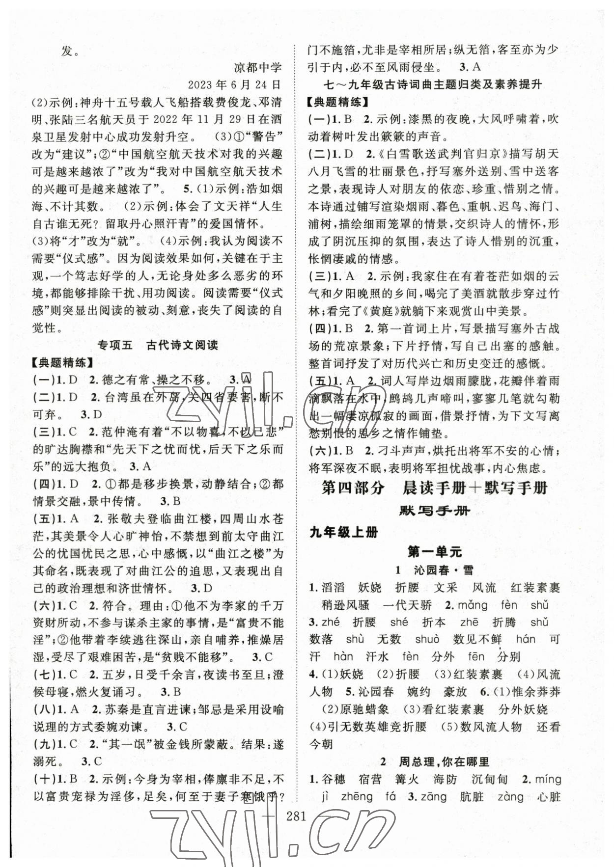注:目前有些书本章节名称可能整理的还不是很完善,但都是按照顺序排列的,请同学们按照顺序仔细查找。练习册 2023年名师学案九年级语文全一册人教版贵州专版 答案主要是用来给同学们做完题方便对答案用的,请勿直接抄袭。