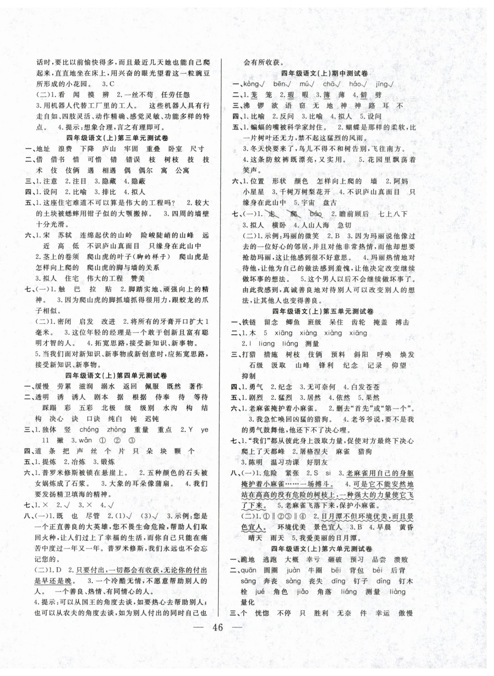 注:目前有些书本章节名称可能整理的还不是很完善,但都是按照顺序排列的,请同学们按照顺序仔细查找。练习册 2023年优等生全优计划四年级语文上册人教版 答案主要是用来给同学们做完题方便对答案用的,请勿直接抄袭。