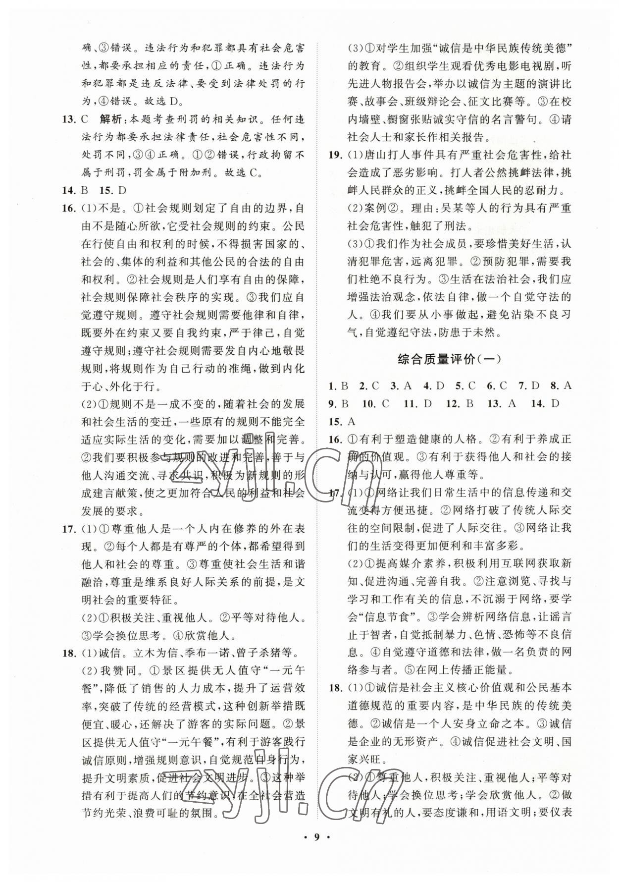 注:目前有些书本章节名称可能整理的还不是很完善,但都是按照顺序排列的,请同学们按照顺序仔细查找。练习册 2023年同步练习册分层卷八年级道德与法治上册人教版 答案主要是用来给同学们做完题方便对答案用的,请勿直接抄袭。