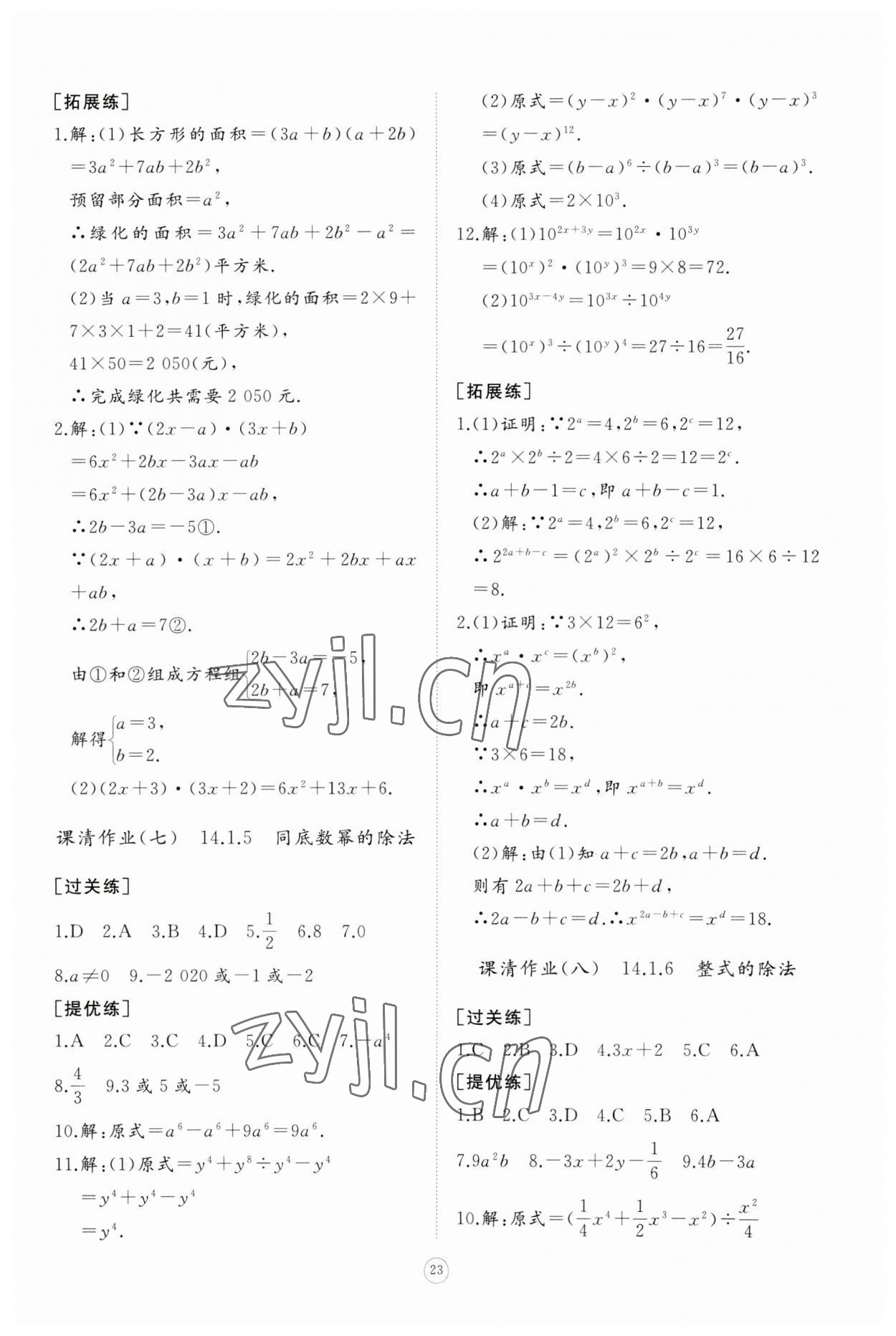 2023年同步练习册智慧作业八年级数学上册人教版
