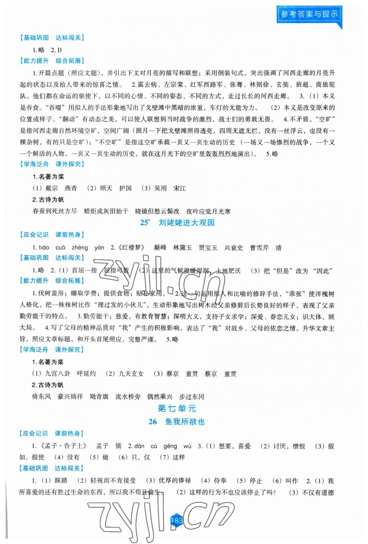 2023年新课程能力培养九年级语文上册人教版大连专版