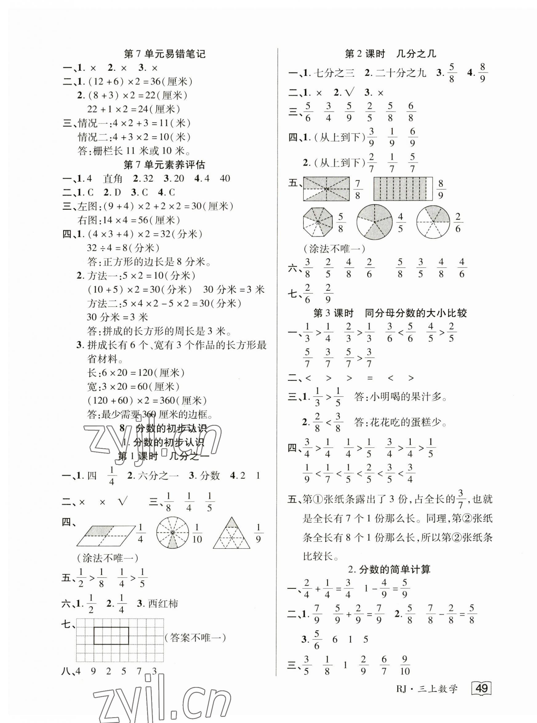 2023年花儿与星星三年级数学上册人教版