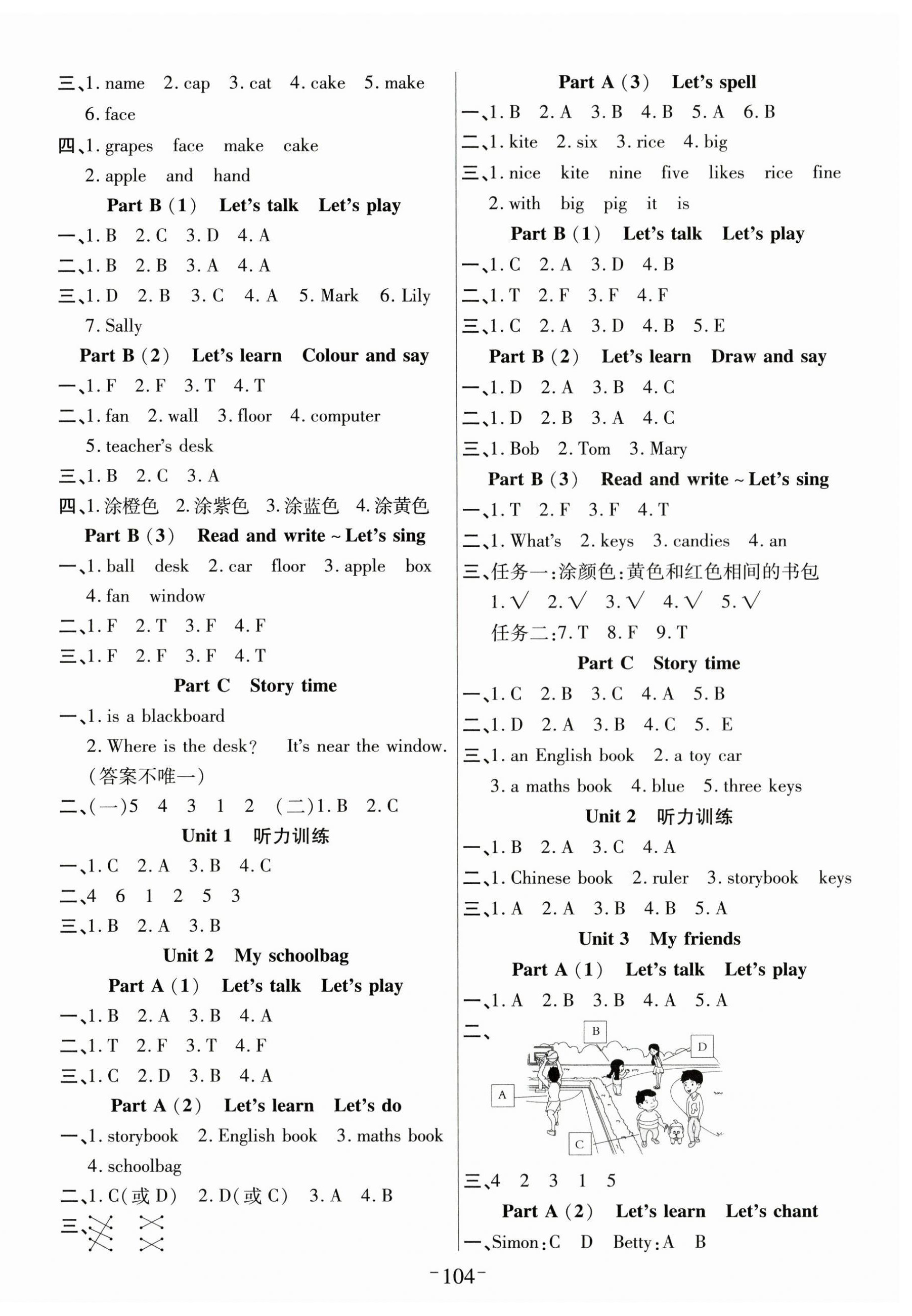 注:目前有些书本章节名称可能整理的还不是很完善,但都是按照顺序排列的,请同学们按照顺序仔细查找。练习册 2023年小状元随堂作业四年级英语上册人教版 答案主要是用来给同学们做完题方便对答案用的,请勿直接抄袭。