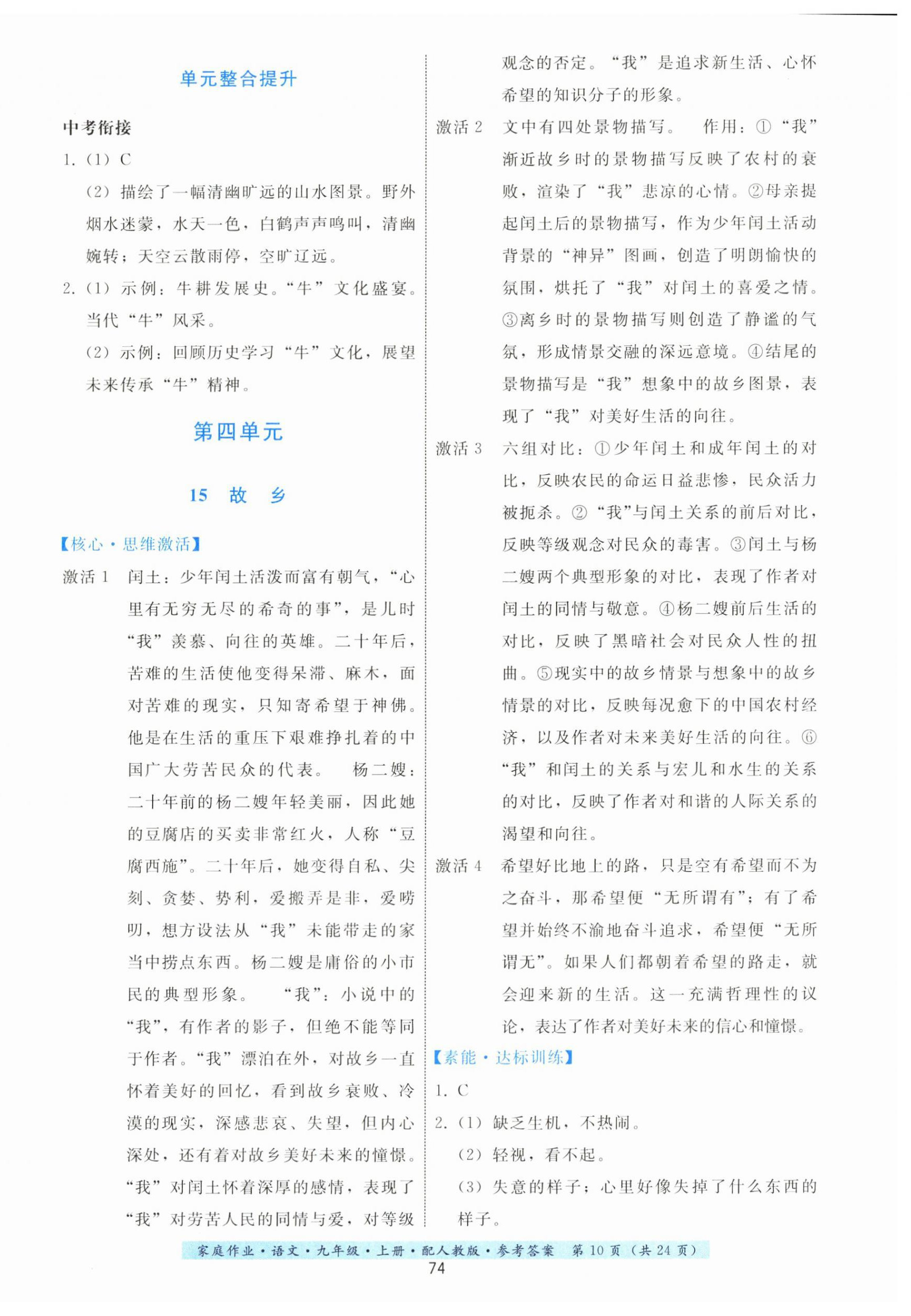 注:目前有些书本章节名称可能整理的还不是很完善,但都是按照顺序排列的,请同学们按照顺序仔细查找。练习册 2023年家庭作业九年级语文上册人教版 答案主要是用来给同学们做完题方便对答案用的,请勿直接抄袭。