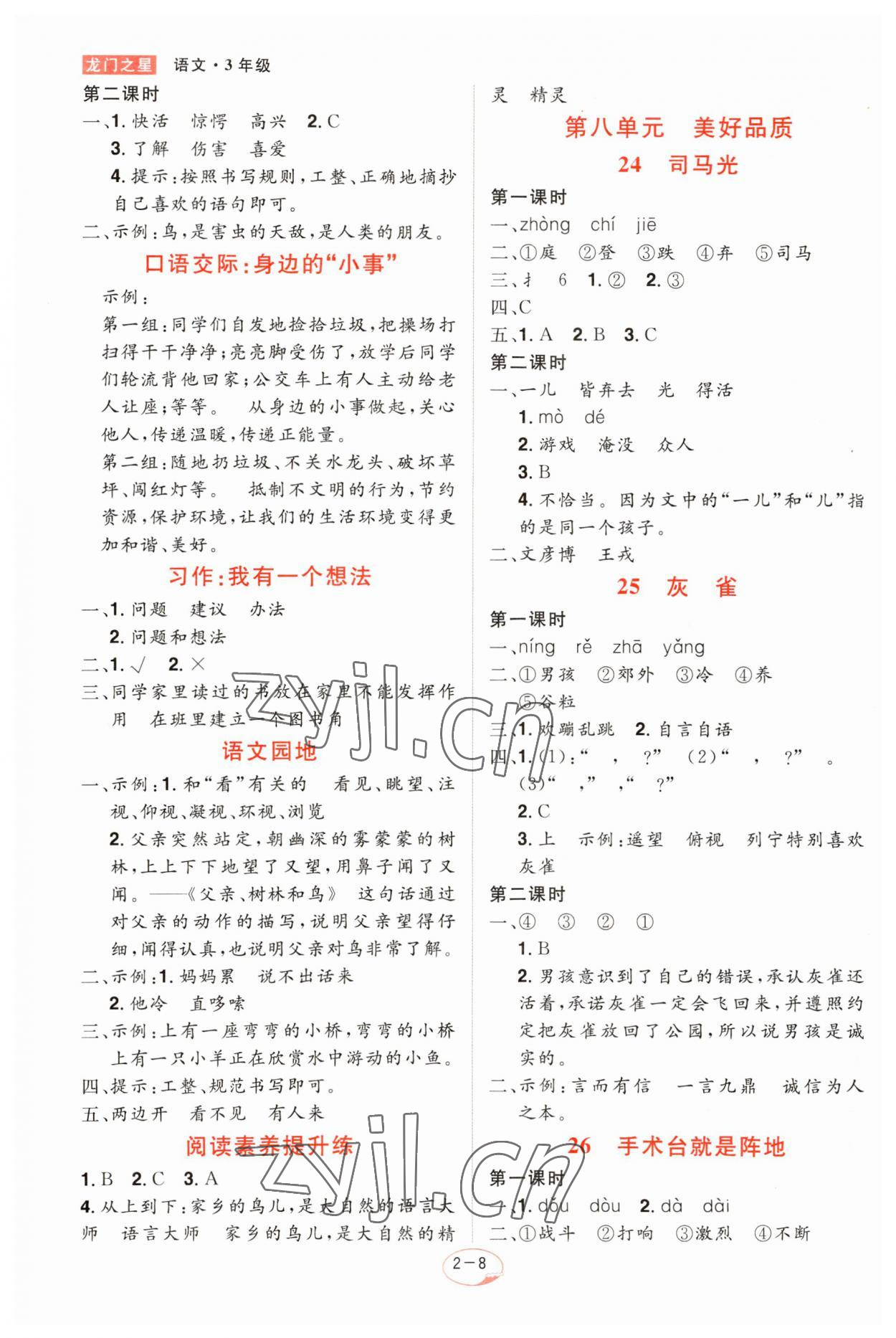 注:目前有些书本章节名称可能整理的还不是很完善,但都是按照顺序排列的,请同学们按照顺序仔细查找。练习册 2023年龙门之星三年级语文上册人教版 答案主要是用来给同学们做完题方便对答案用的,请勿直接抄袭。