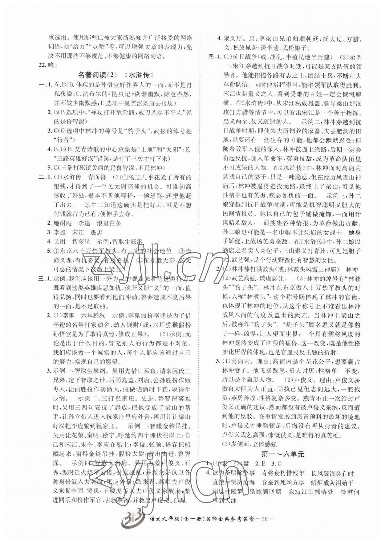 注:目前有些书本章节名称可能整理的还不是很完善,但都是按照顺序排列的,请同学们按照顺序仔细查找。练习册 2023年名师金典BFB初中课时优化九年级语文全一册人教版 答案主要是用来给同学们做完题方便对答案用的,请勿直接抄袭。