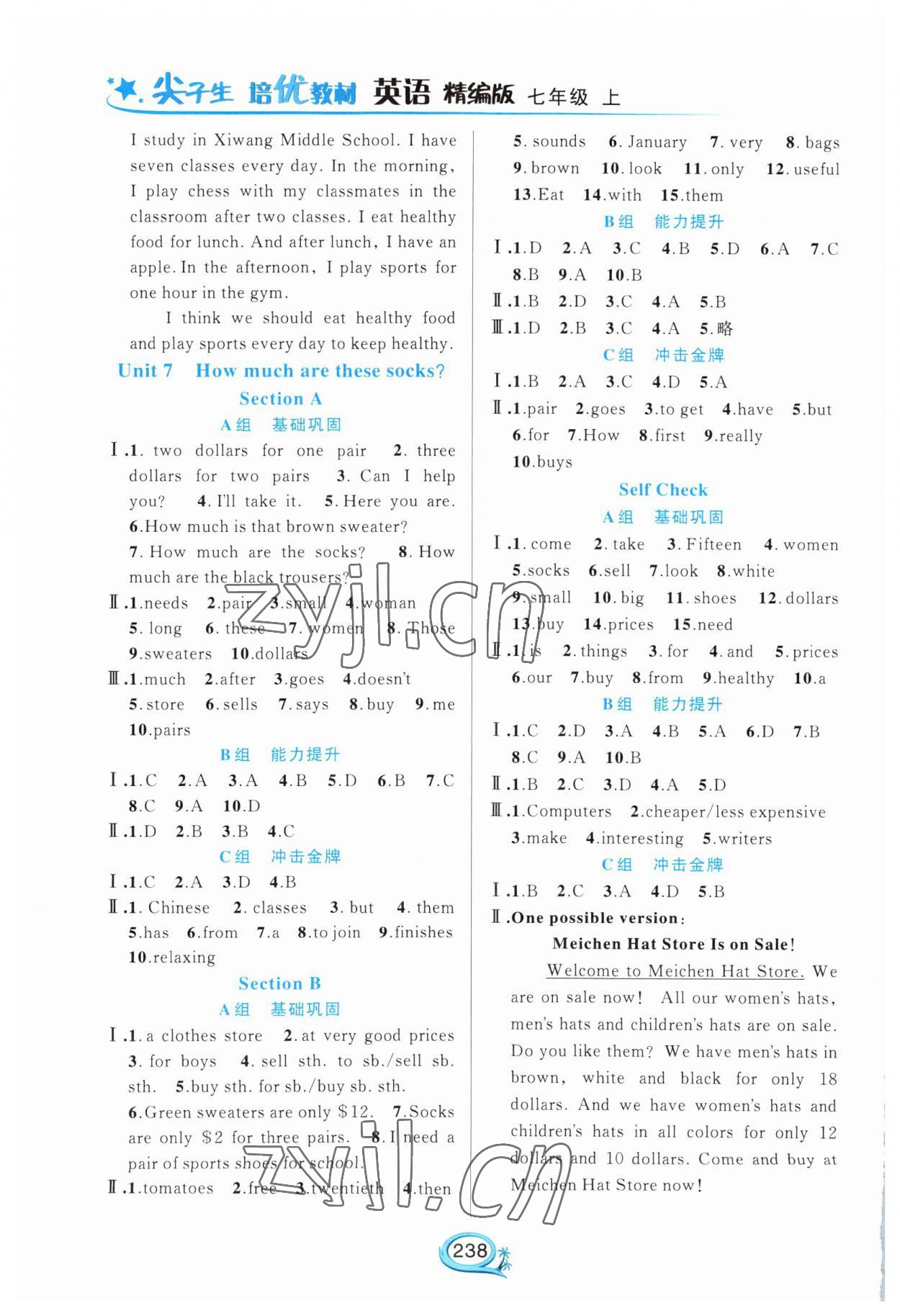 注:目前有些书本章节名称可能整理的还不是很完善,但都是按照顺序排列的,请同学们按照顺序仔细查找。练习册 2023年尖子生培优教材七年级英语上册人教版精编版 答案主要是用来给同学们做完题方便对答案用的,请勿直接抄袭。