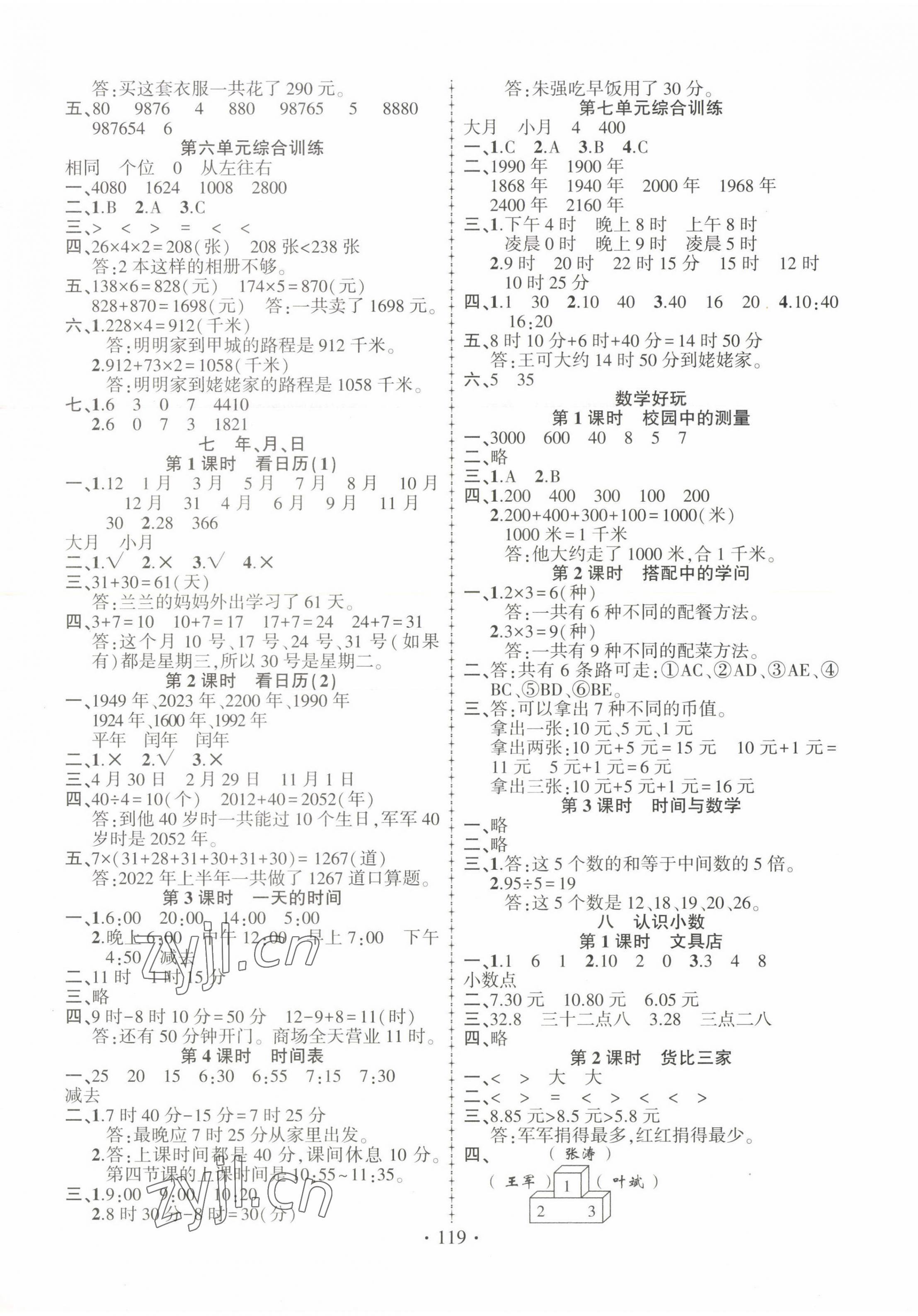 2023年金榜行动新疆文化出版社三年级数学上册北师大版
