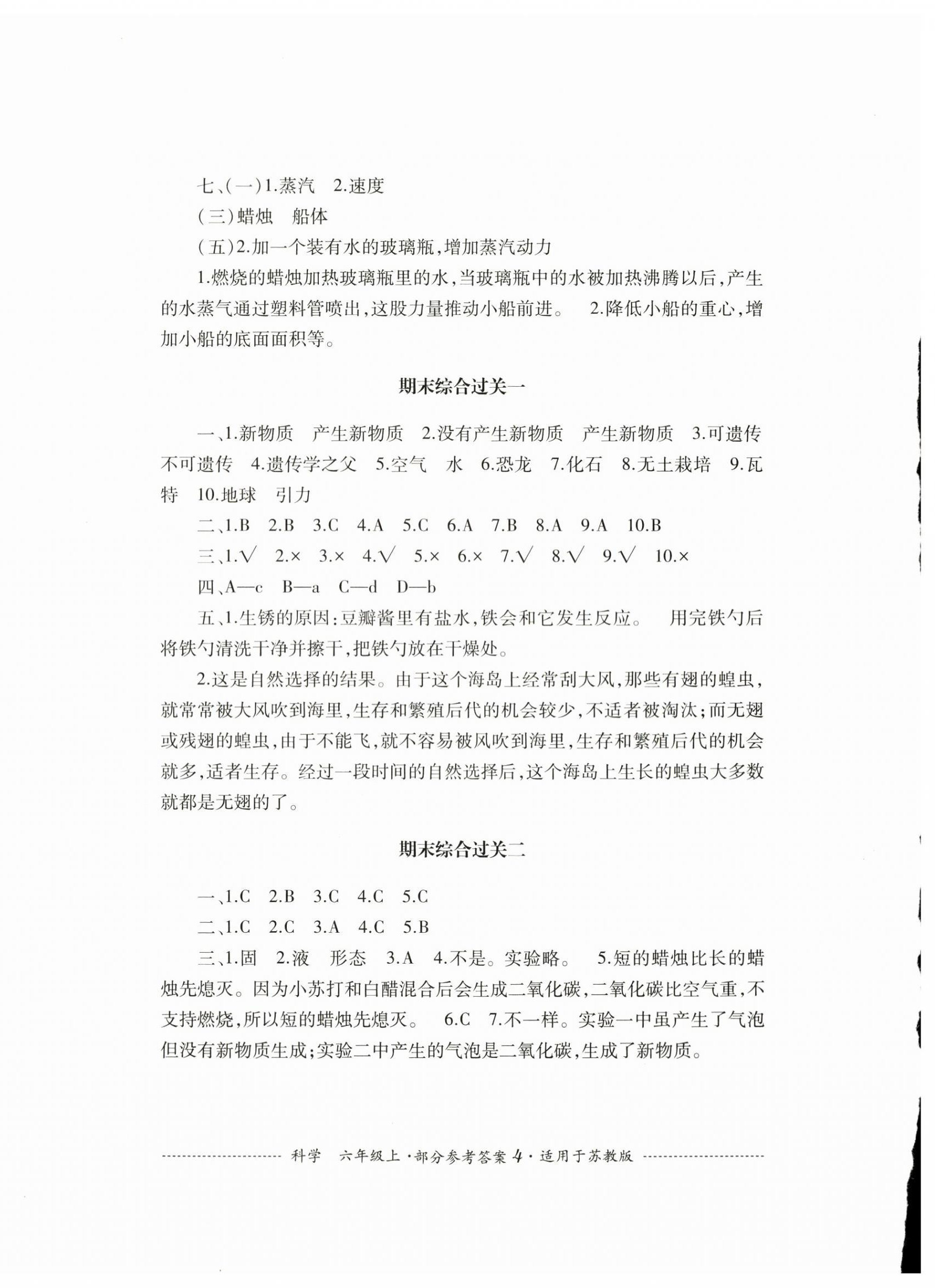 2023年过关清单四川教育出版社六年级科学上册苏教版