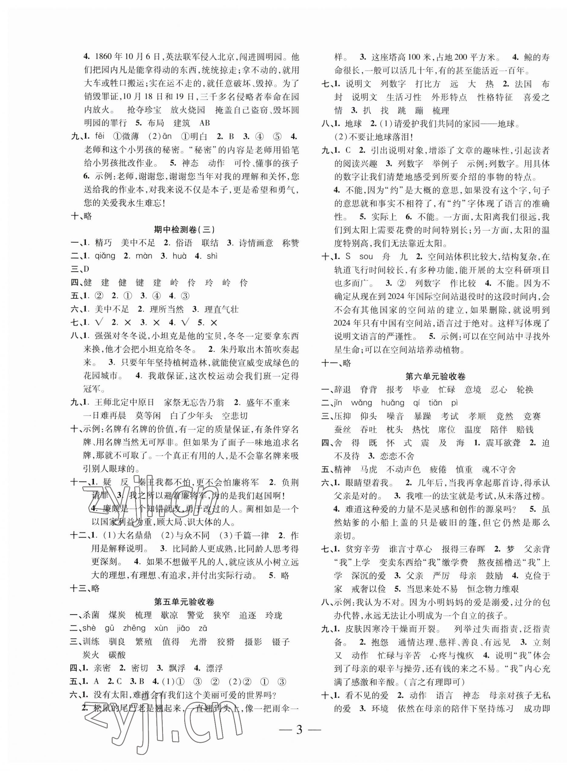 注:目前有些书本章节名称可能整理的还不是很完善,但都是按照顺序排列的,请同学们按照顺序仔细查找。练习册 2023年本土卷五年级语文上册人教版 答案主要是用来给同学们做完题方便对答案用的,请勿直接抄袭。