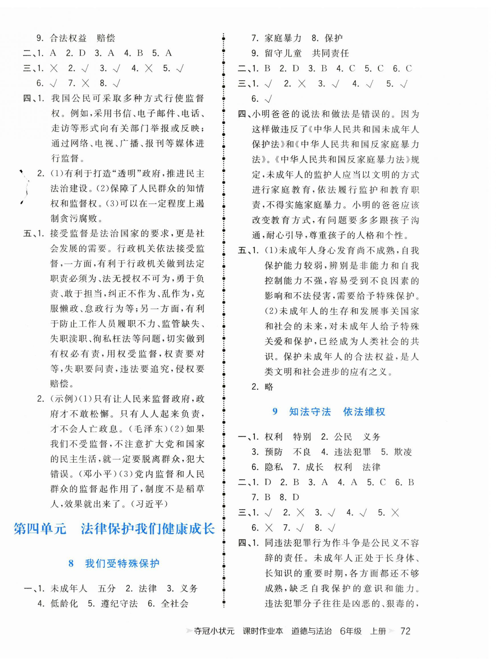 注:目前有些书本章节名称可能整理的还不是很完善,但都是按照顺序排列的,请同学们按照顺序仔细查找。练习册 2023年夺冠小状元课时作业本六年级道德与法治上册人教版 答案主要是用来给同学们做完题方便对答案用的,请勿直接抄袭。