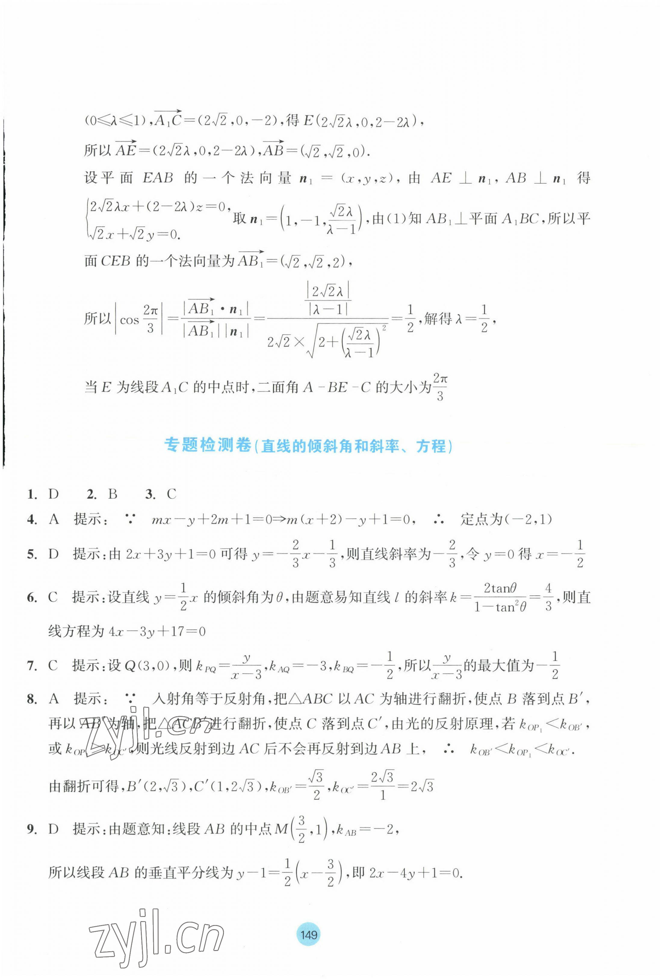 2023年作业本浙江教育出版社高中数学选择性必修第一册