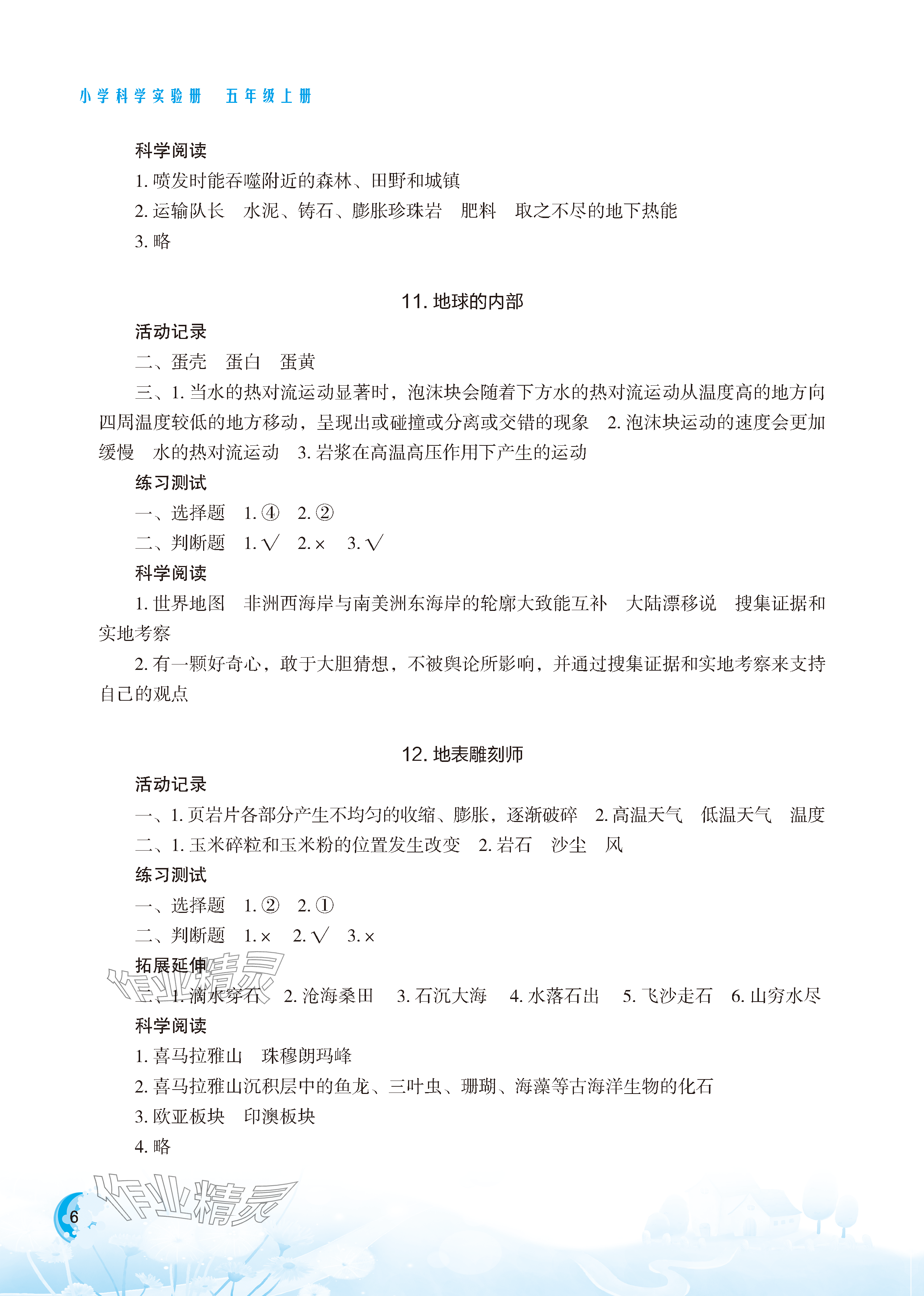 注:目前有些书本章节名称可能整理的还不是很完善,但都是按照顺序排列的,请同学们按照顺序仔细查找。练习册 2023年小学科学实验册五年级科学上册苏教版 答案主要是用来给同学们做完题方便对答案用的,请勿直接抄袭。
