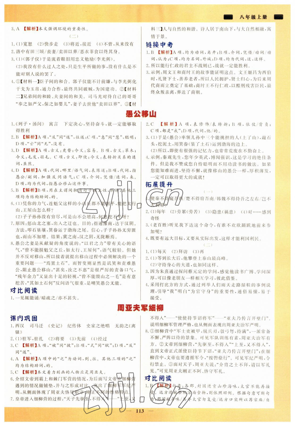 注:目前有些书本章节名称可能整理的还不是很完善,但都是按照顺序排列的,请同学们按照顺序仔细查找。练习册 2023年初中文言文详解与训练八年级语文上册人教版 答案主要是用来给同学们做完题方便对答案用的,请勿直接抄袭。