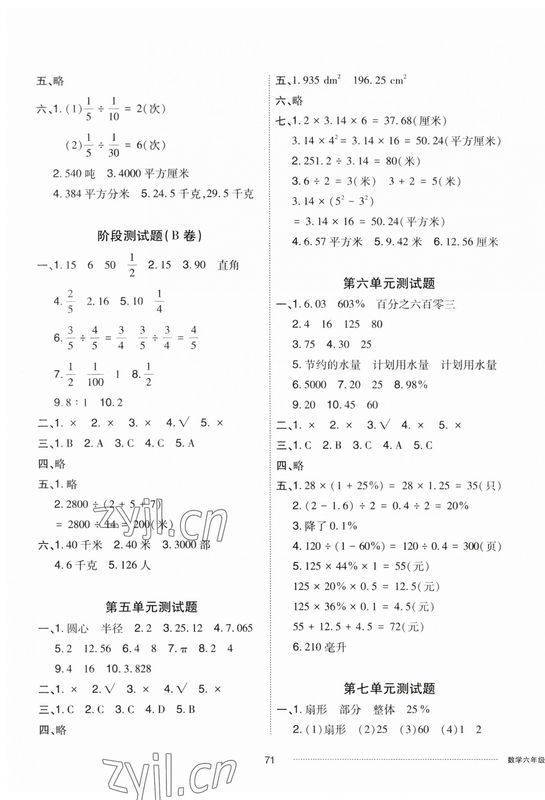 注:目前有些书本章节名称可能整理的还不是很完善,但都是按照顺序排列的,请同学们按照顺序仔细查找。练习册 2023年同步练习册配套单元自测卷六年级数学上册人教版 答案主要是用来给同学们做完题方便对答案用的,请勿直接抄袭。